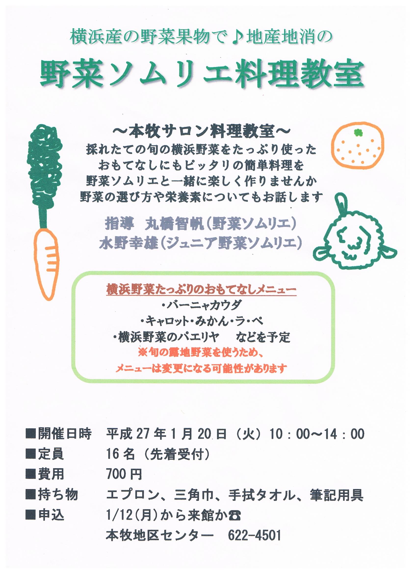 - 持ち物:エプロン・三角巾・手拭タオル・筆記用具