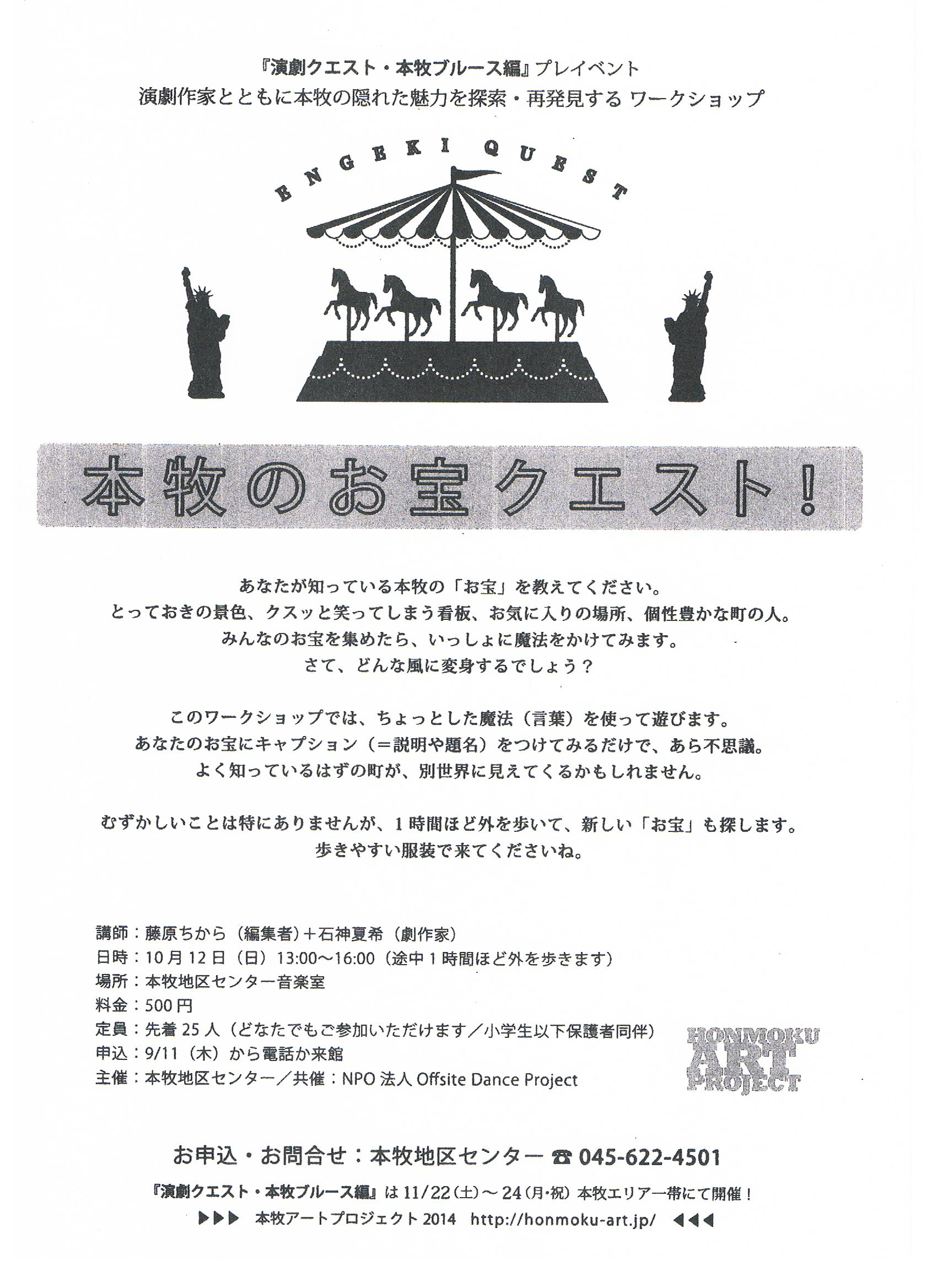 - 10月12日(日)13:00~16:00 (途中1時間ほど外を歩きます)