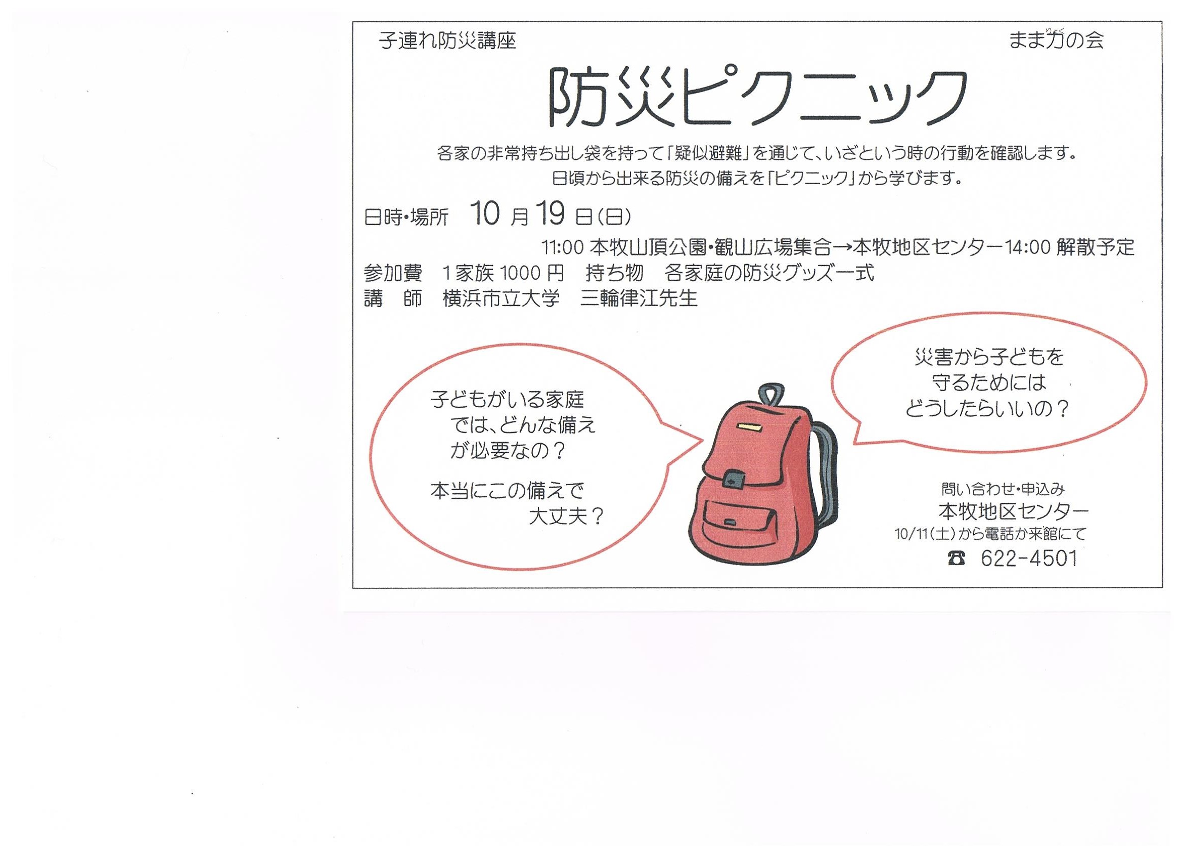 - ワークショップ:10月19日(日)14:00~17:00 地区センター体育室