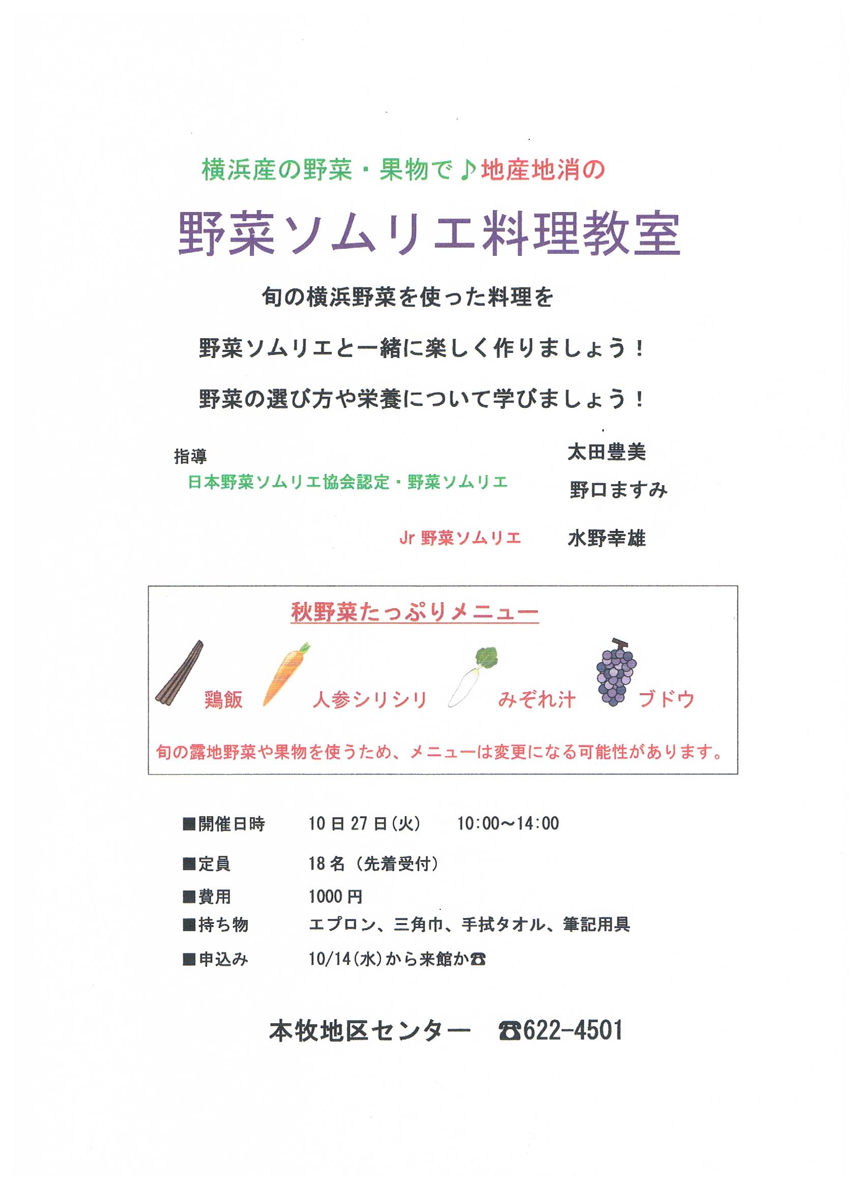 - 持物:エプロン・三角巾・手拭タオル・筆記用具