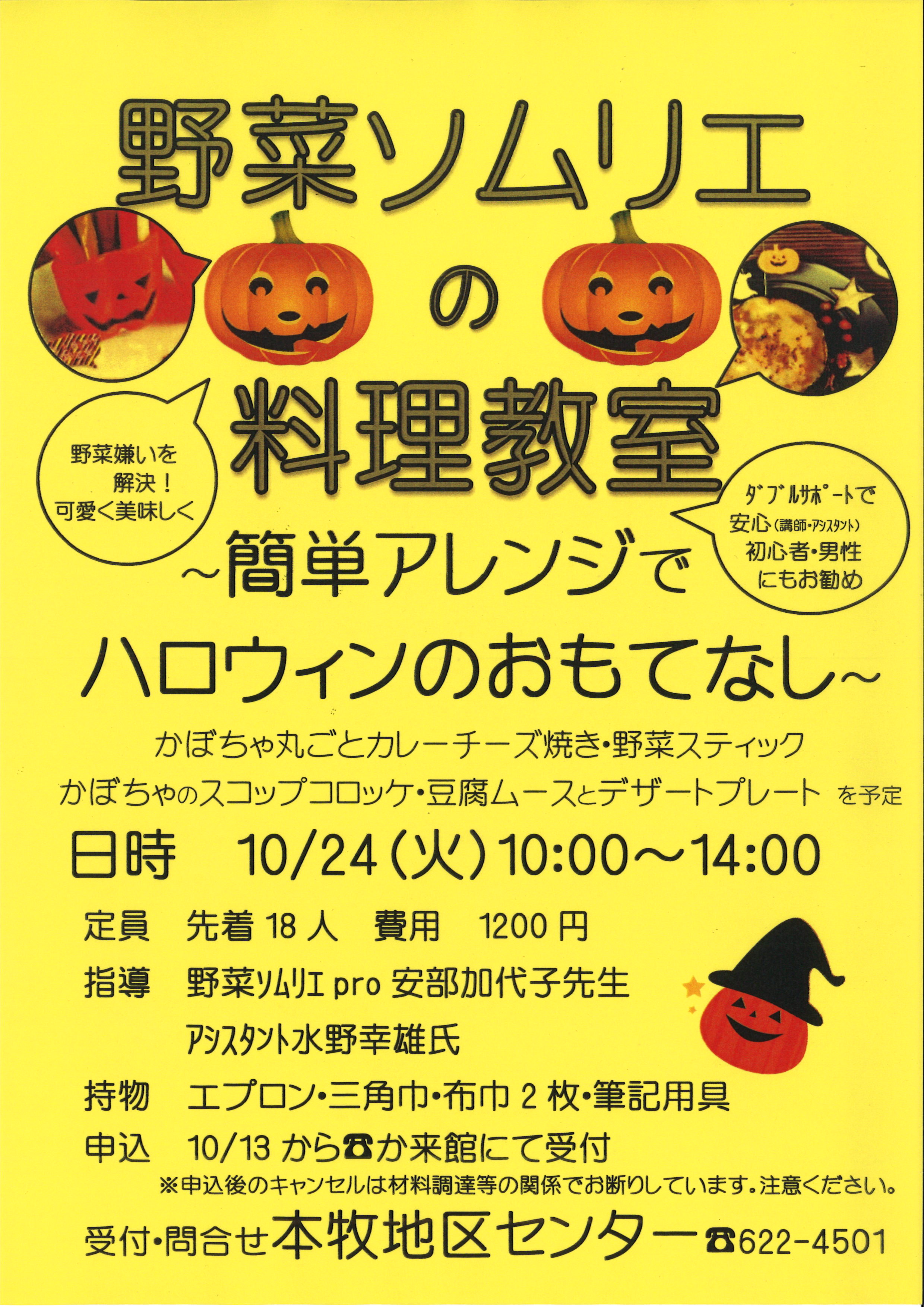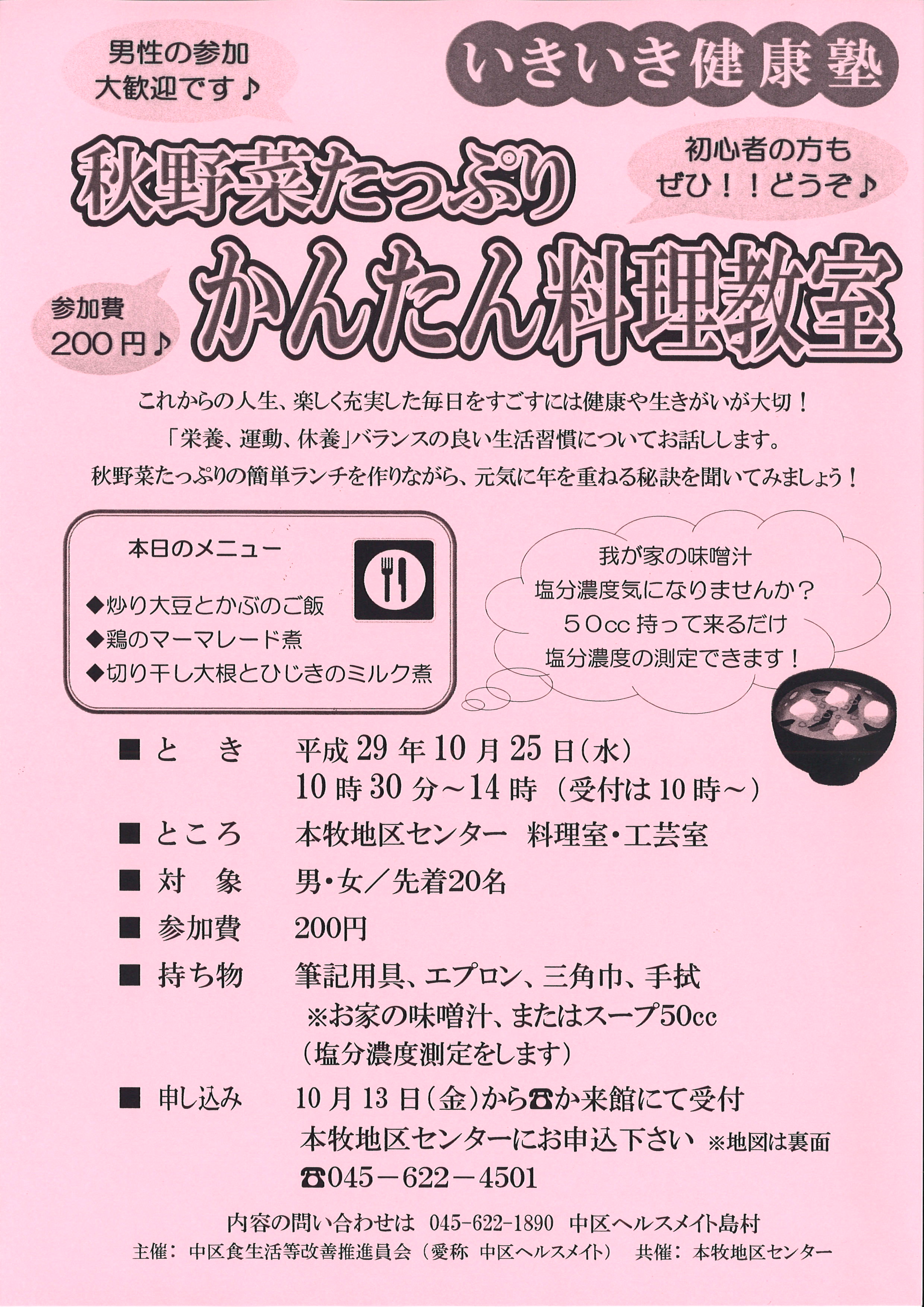 - 持物:エプロン・三角巾・布巾2枚・筆記用具