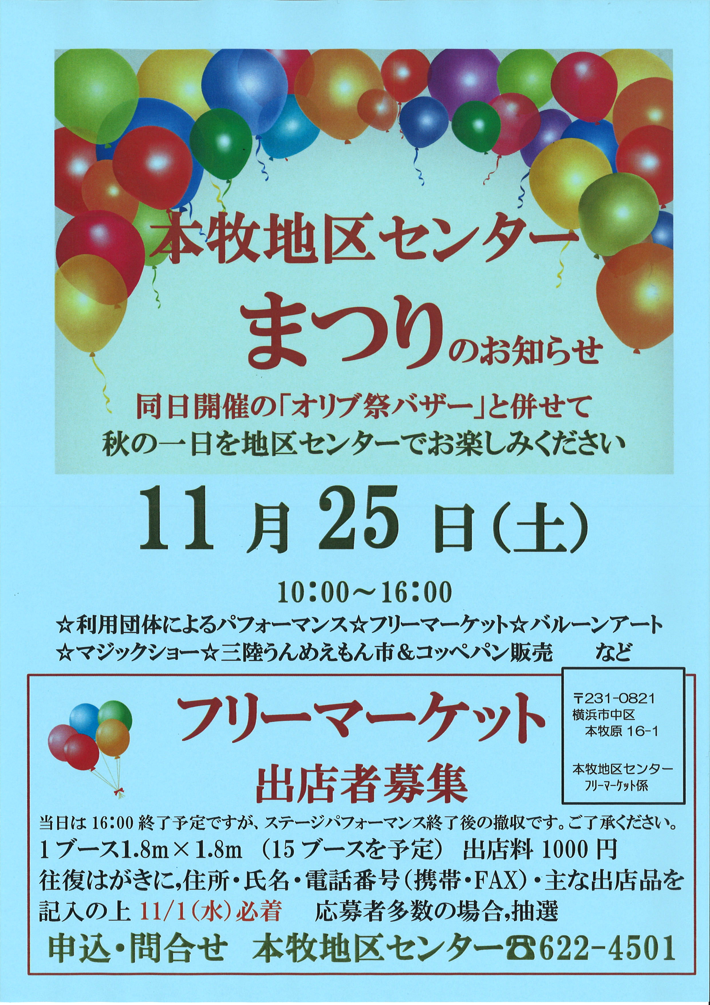 - 地区センター祭り 11月26日 10:00~16:00