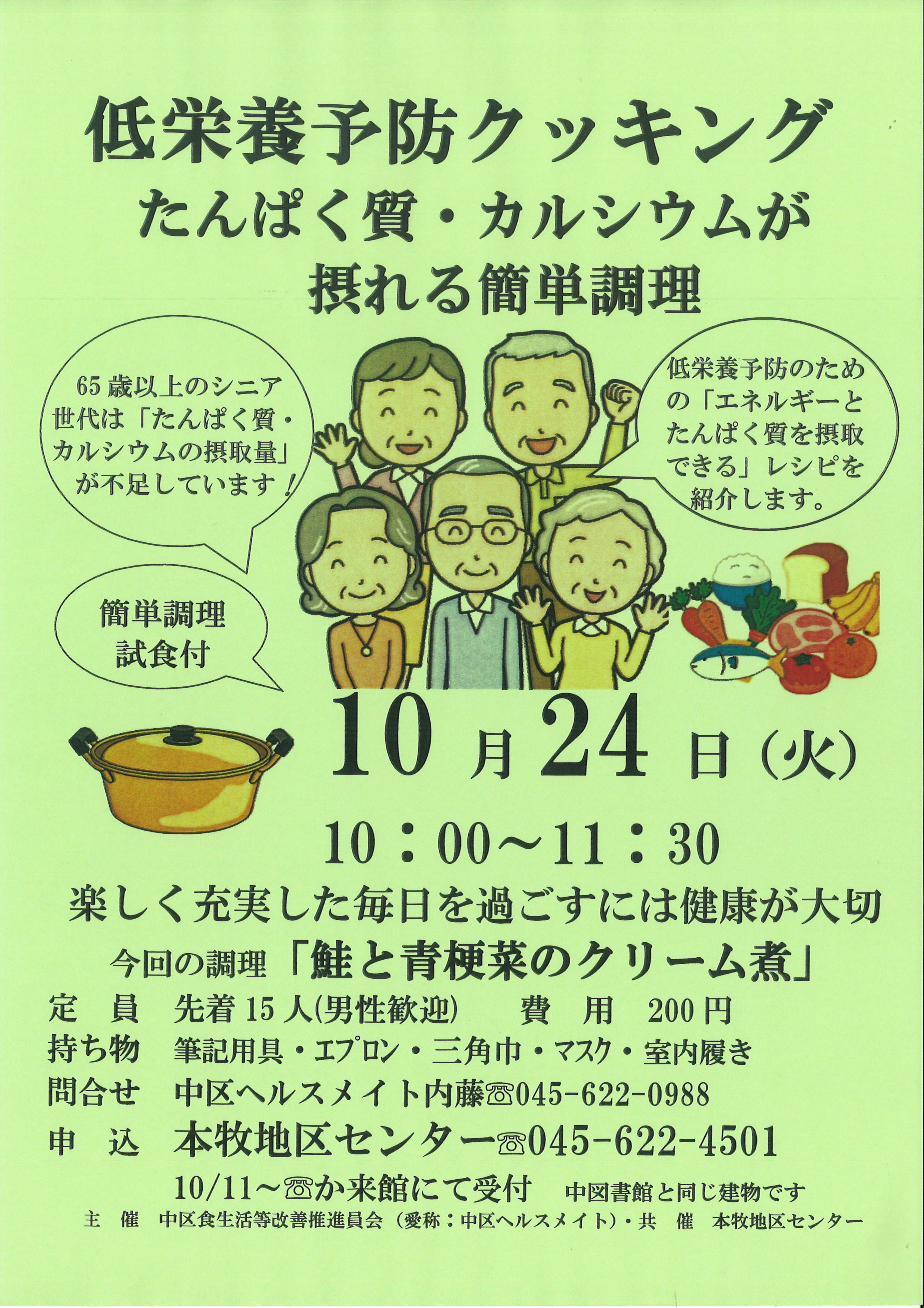 持ち物:筆記用具・エプロン・三角巾・マスク・室内履き