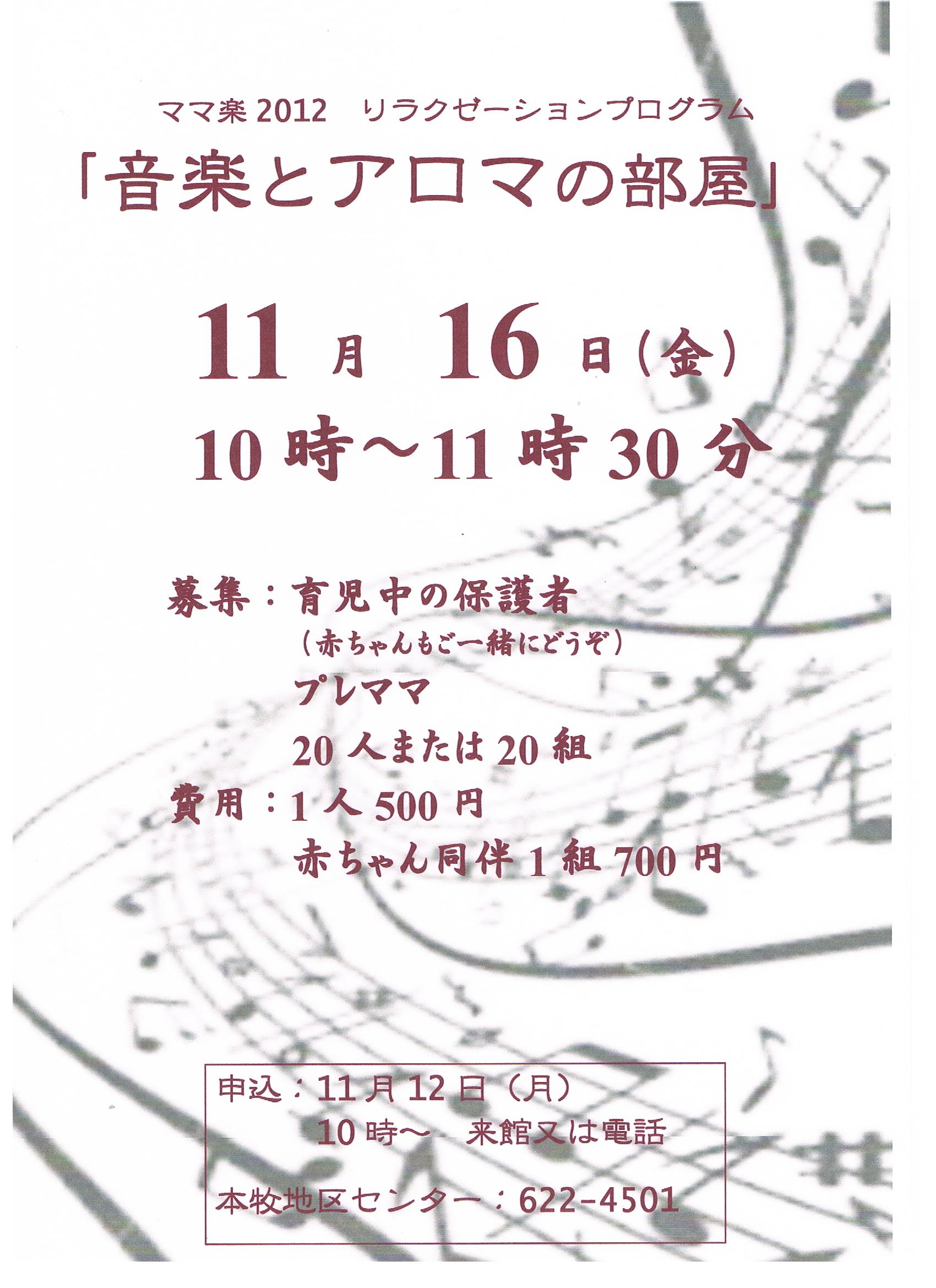 ママ楽 リラクゼーションプログラム 「音楽とアロマの部屋」