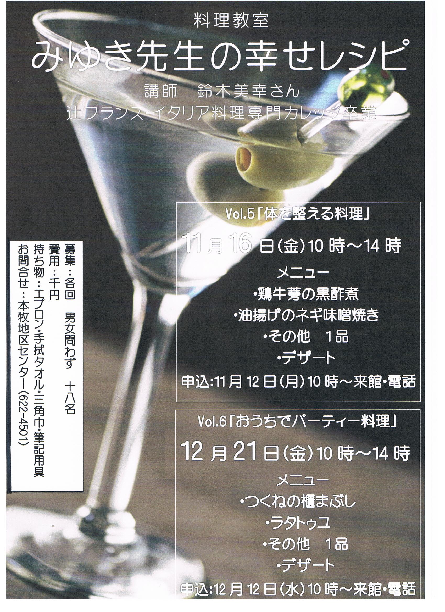 - 持ち物:エプロン・手拭タオル・三角巾・筆記用具