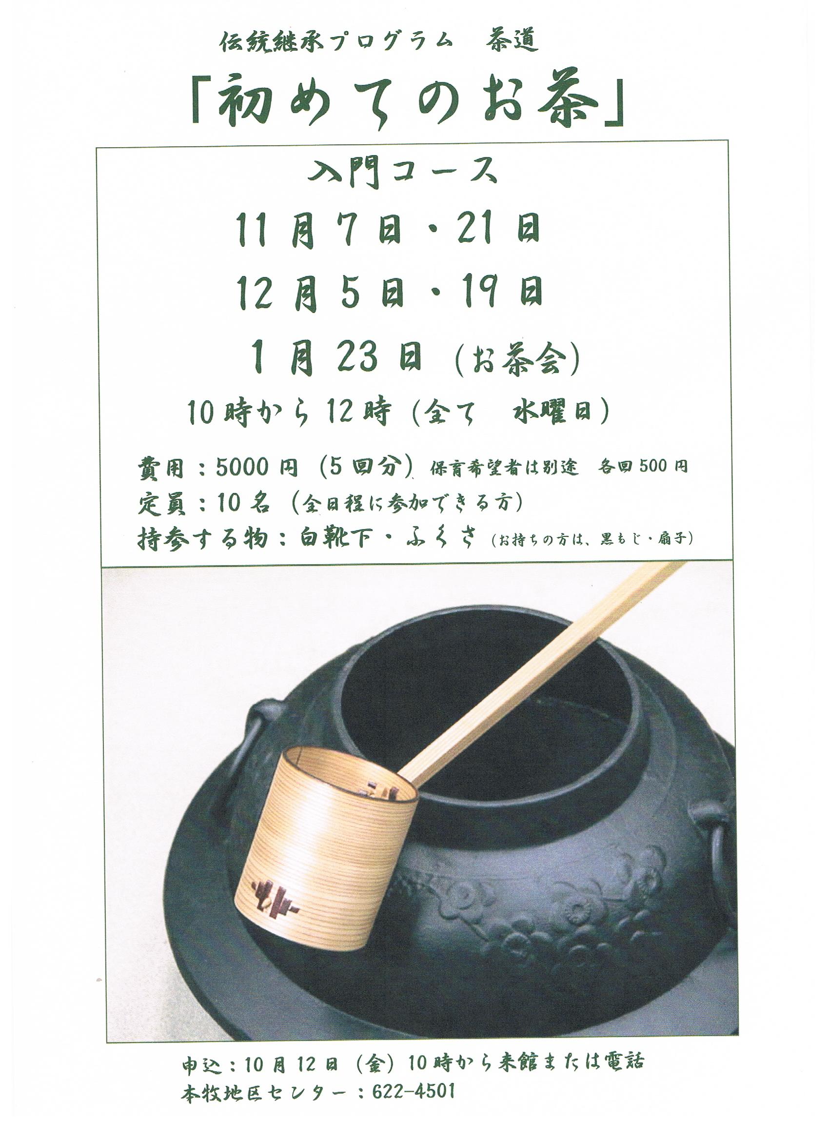 - 10月12日(金)10時から来館または電話