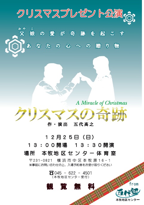 ④プロ集団「五代塾」による演劇舞台公演「クリスマスの奇跡」