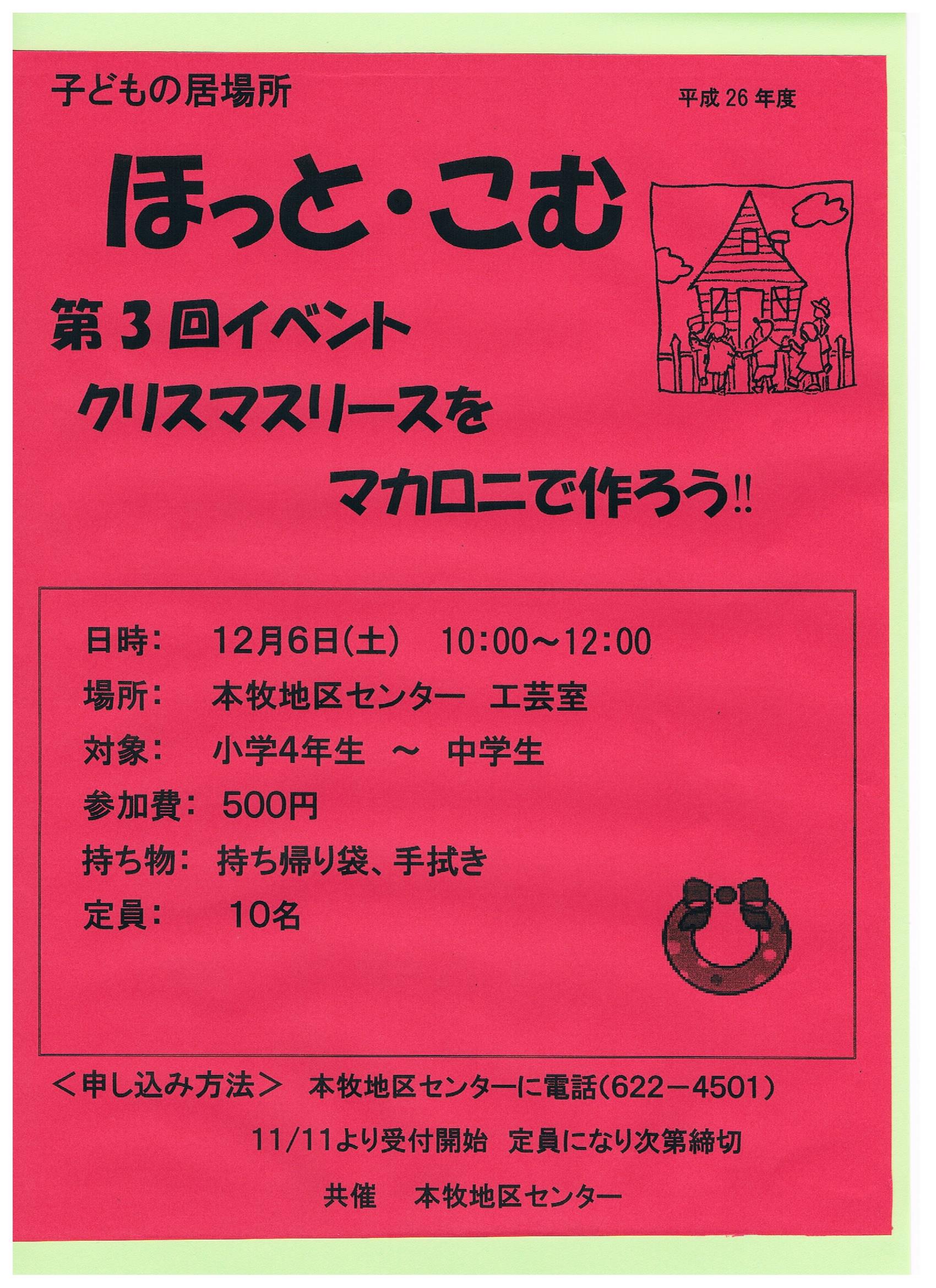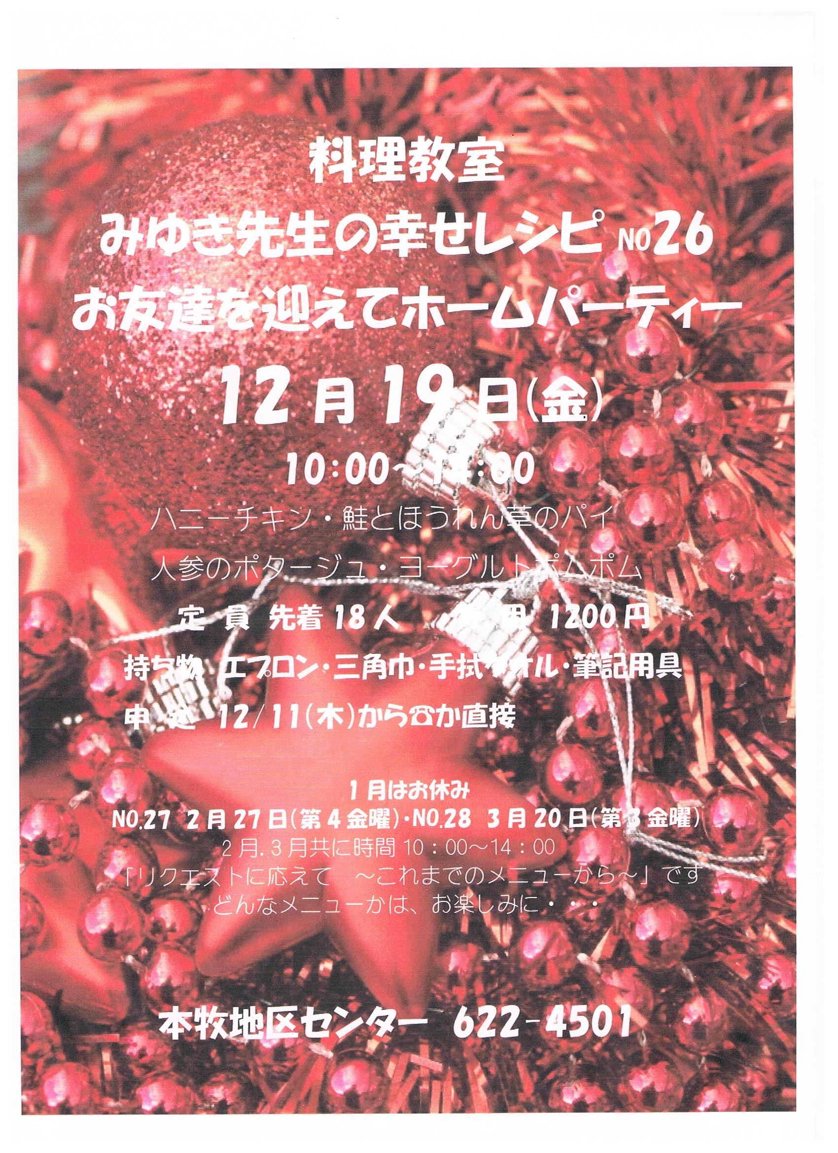 - 持ち物:エプロン・三角巾・手拭タオル・筆記用具