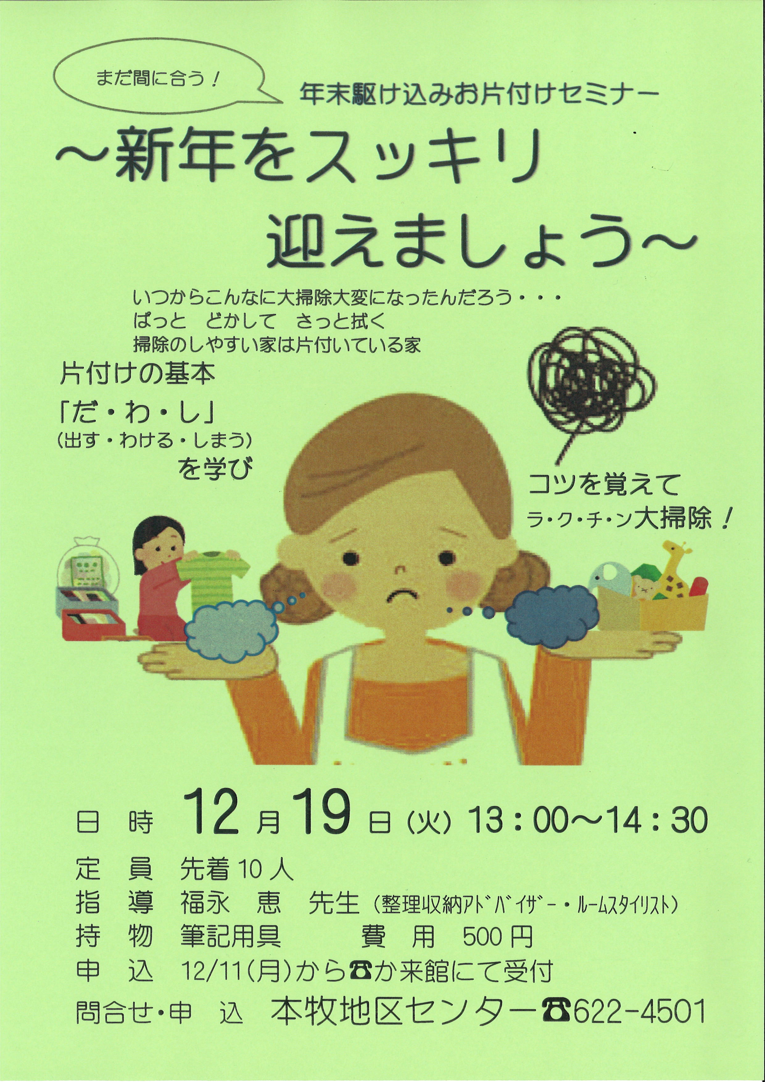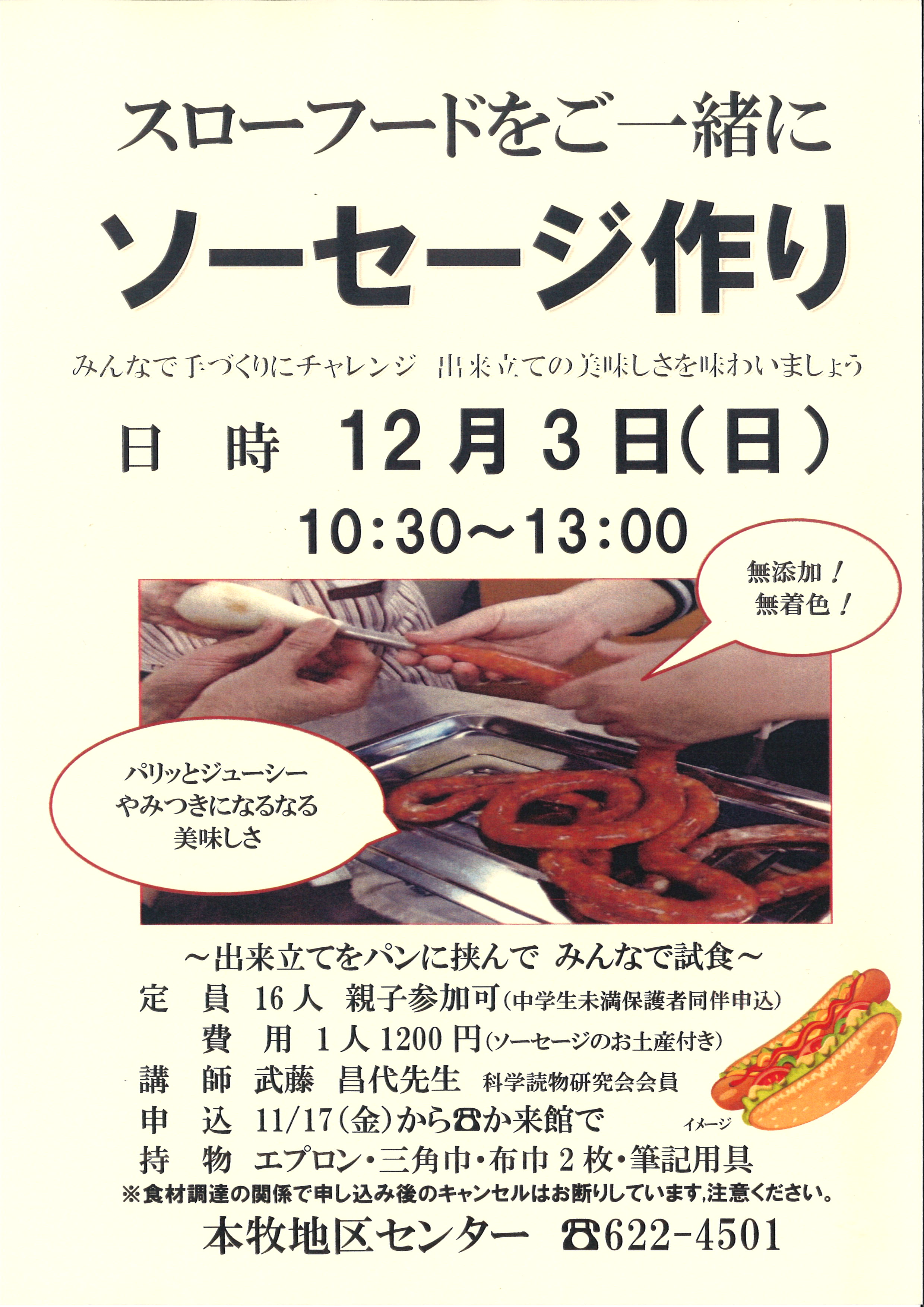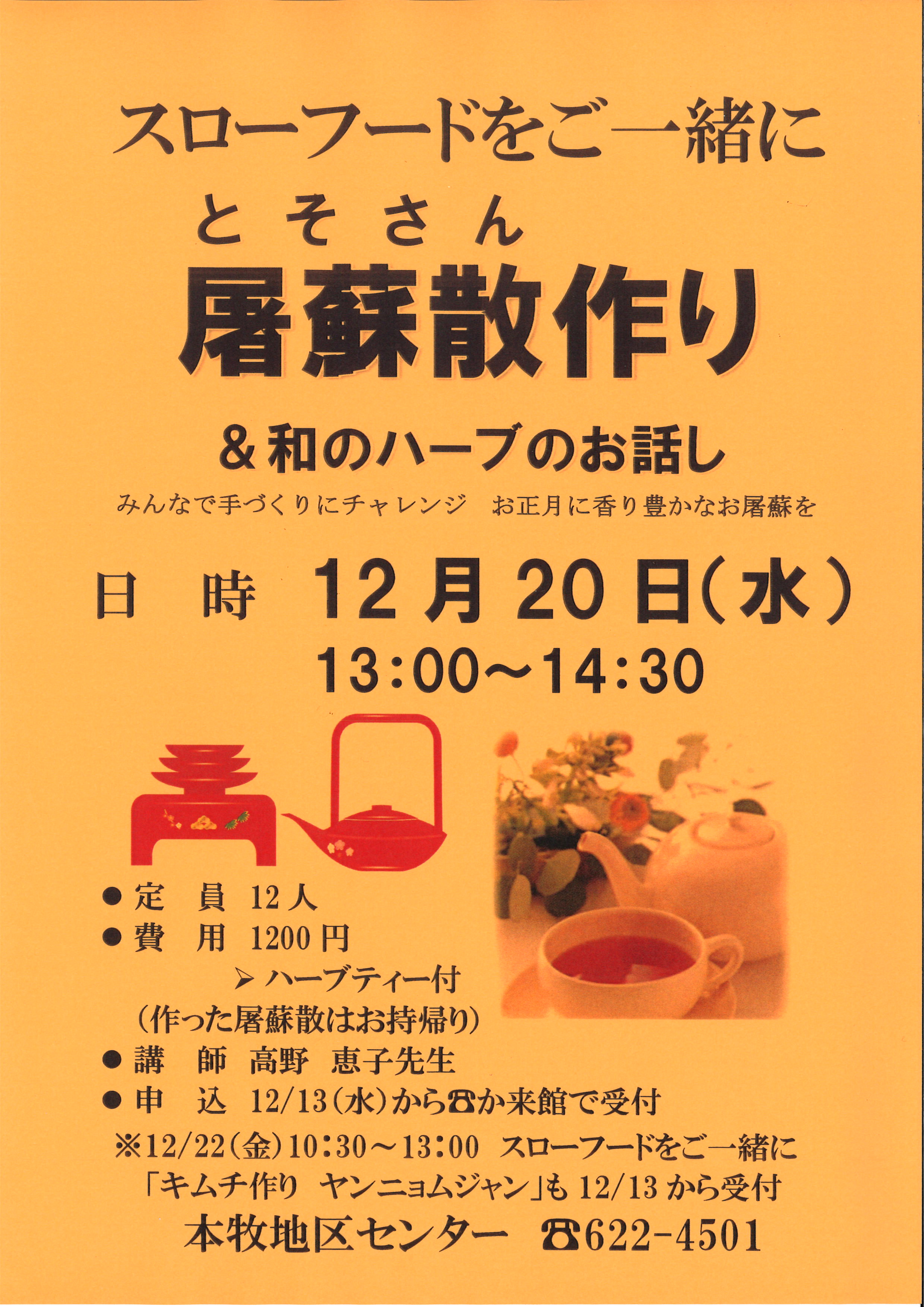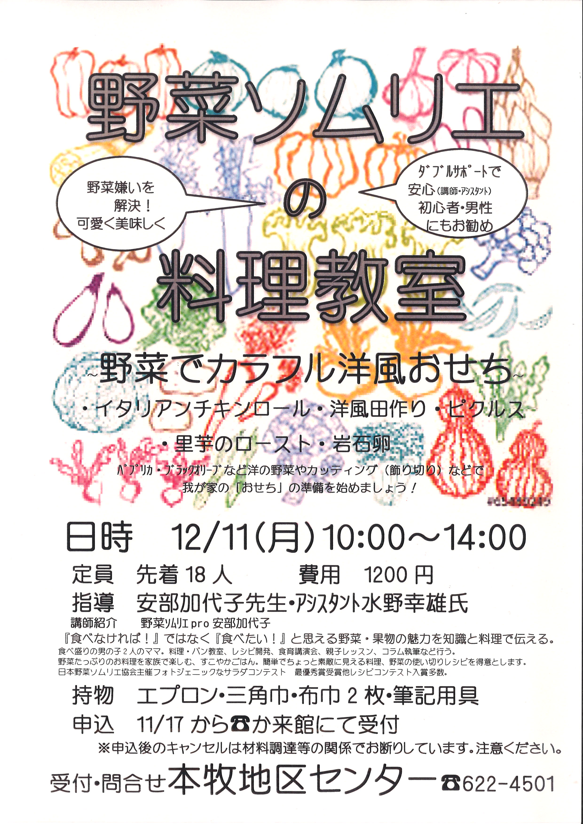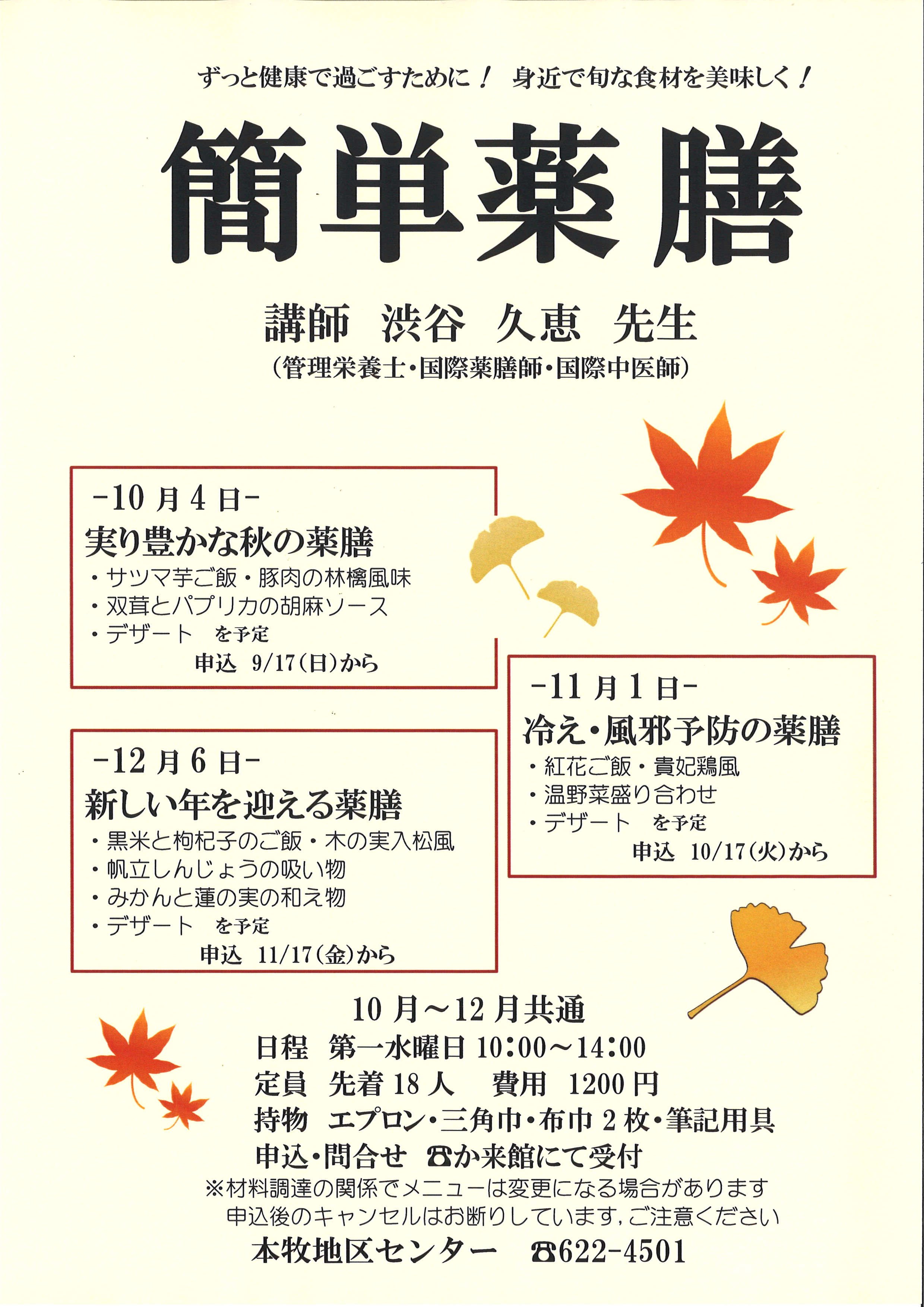 - 持物:エプロン・三角巾・布巾2枚・筆記用具