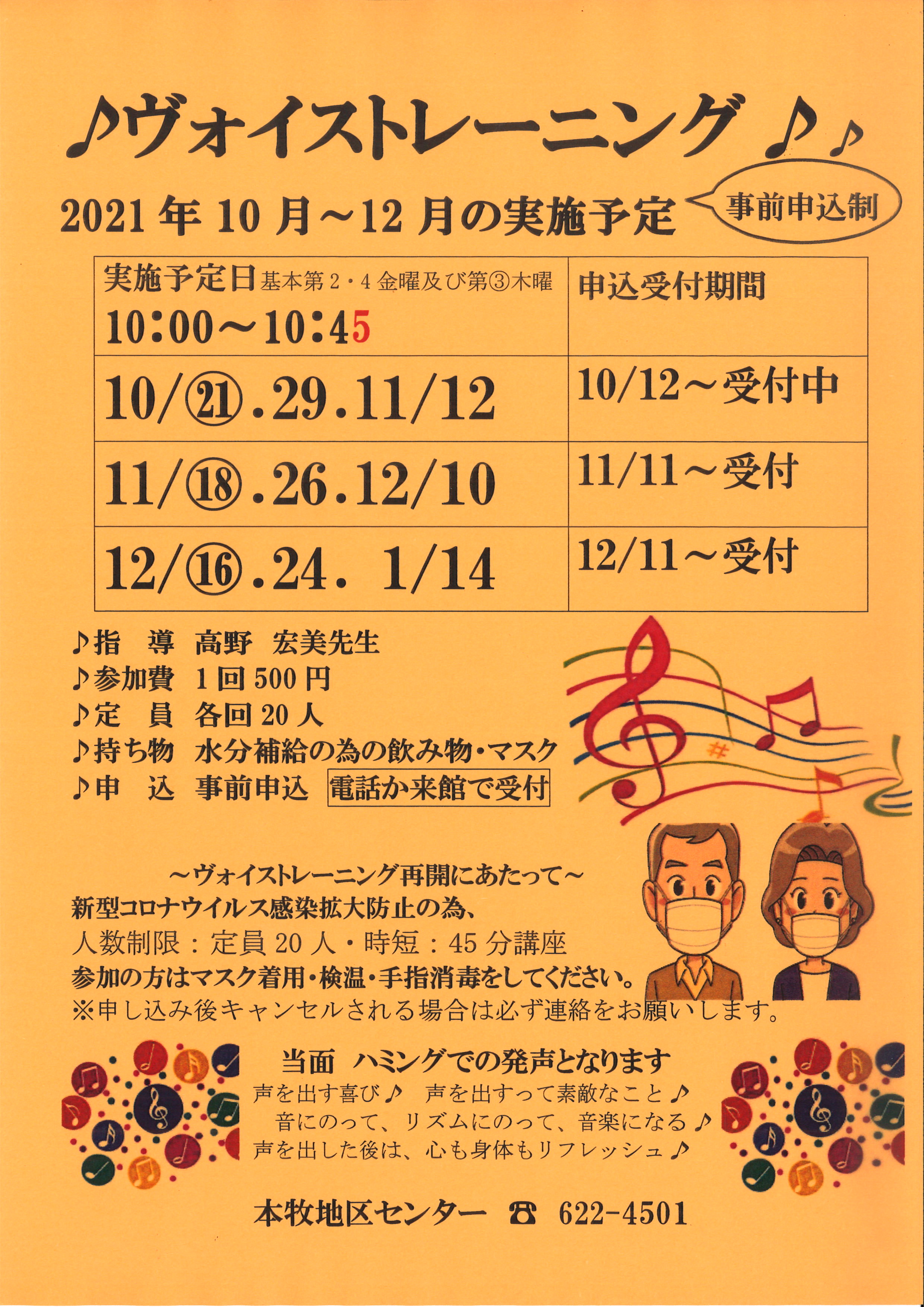 ※感染予防の為 入館時の検温・手指消毒・マスク着用をお願いします