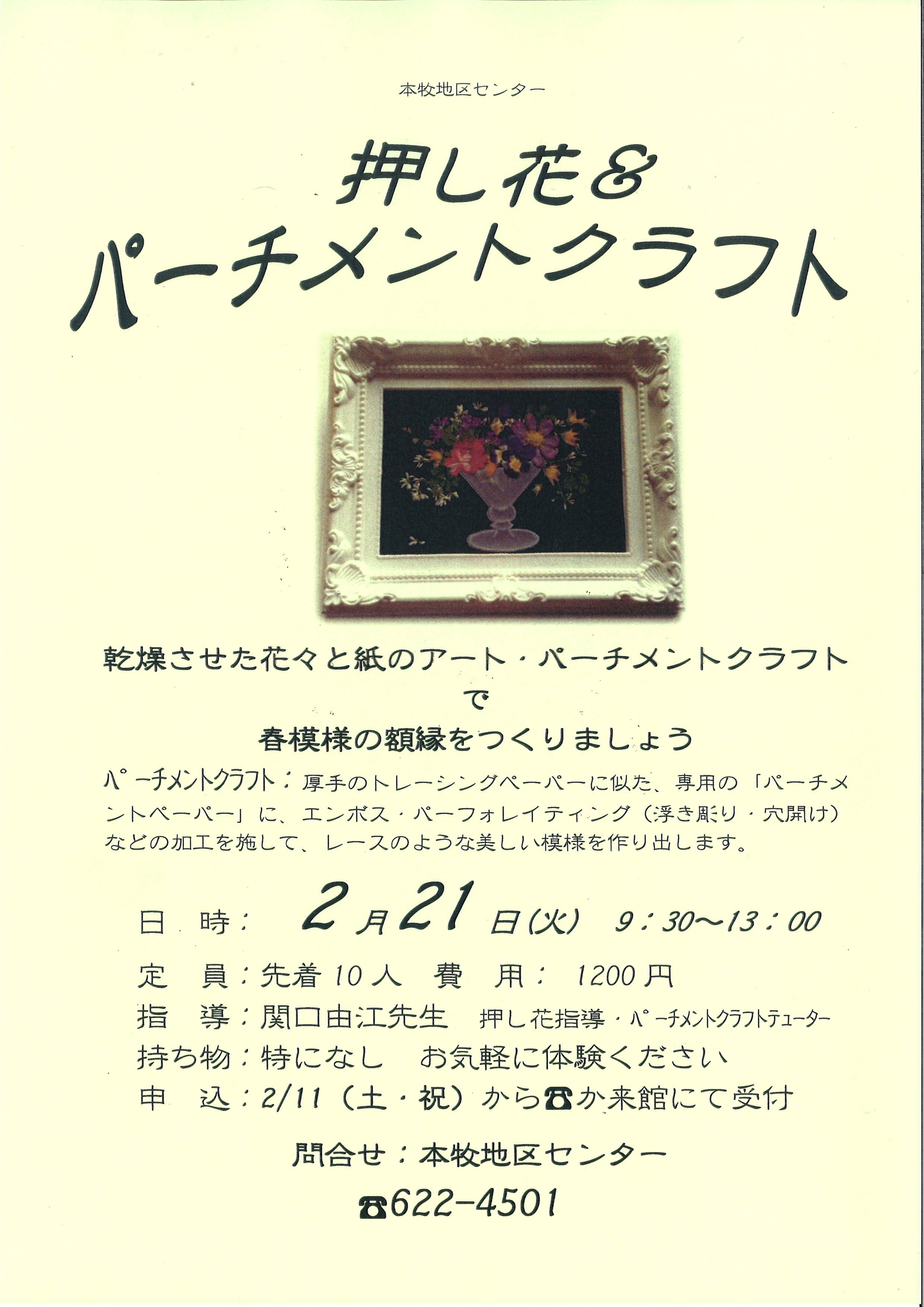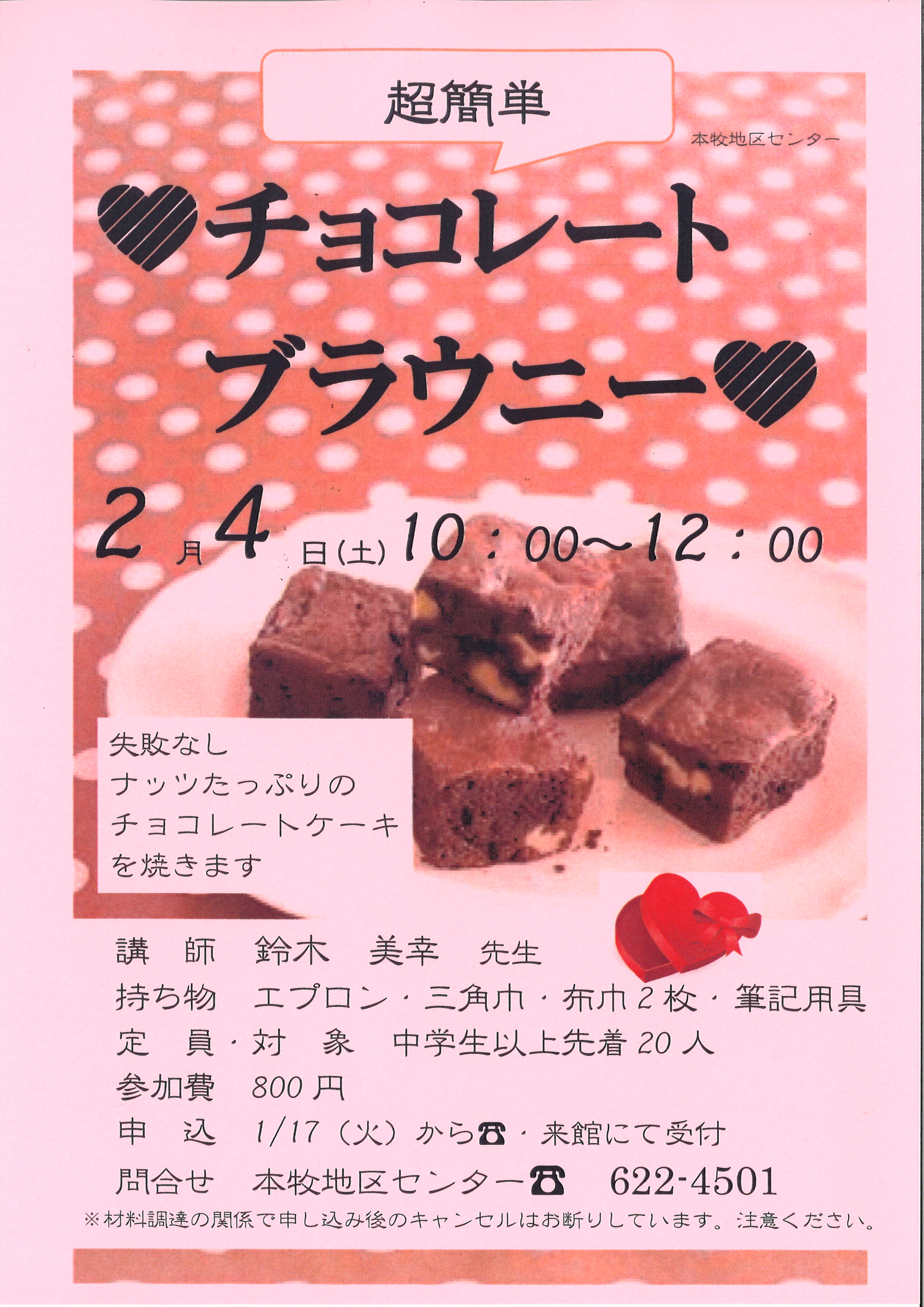 - 持ち物:エプロン・三角巾・布巾2枚・筆記用具
