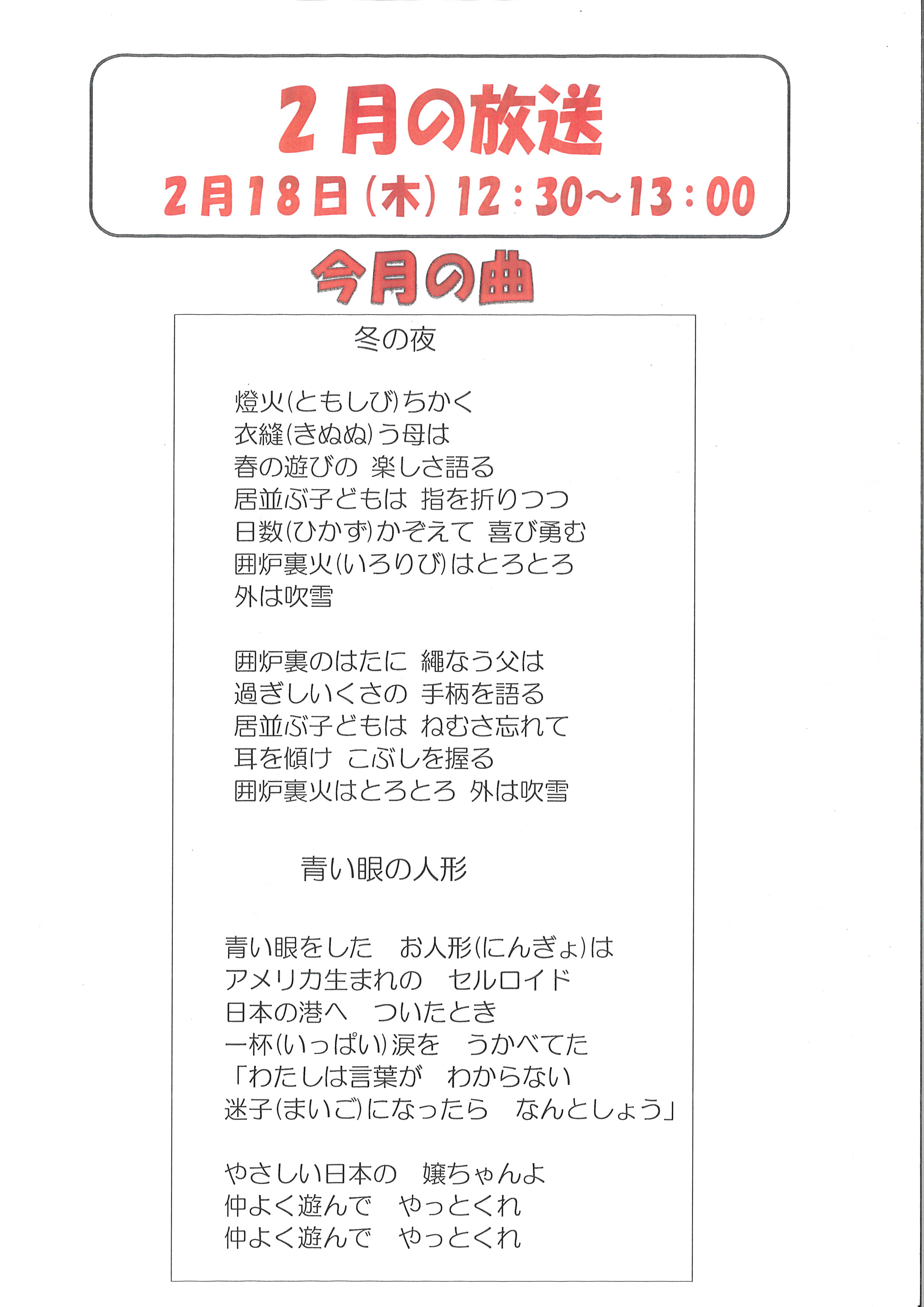 2月は「冬の夜」「青い目の人形」