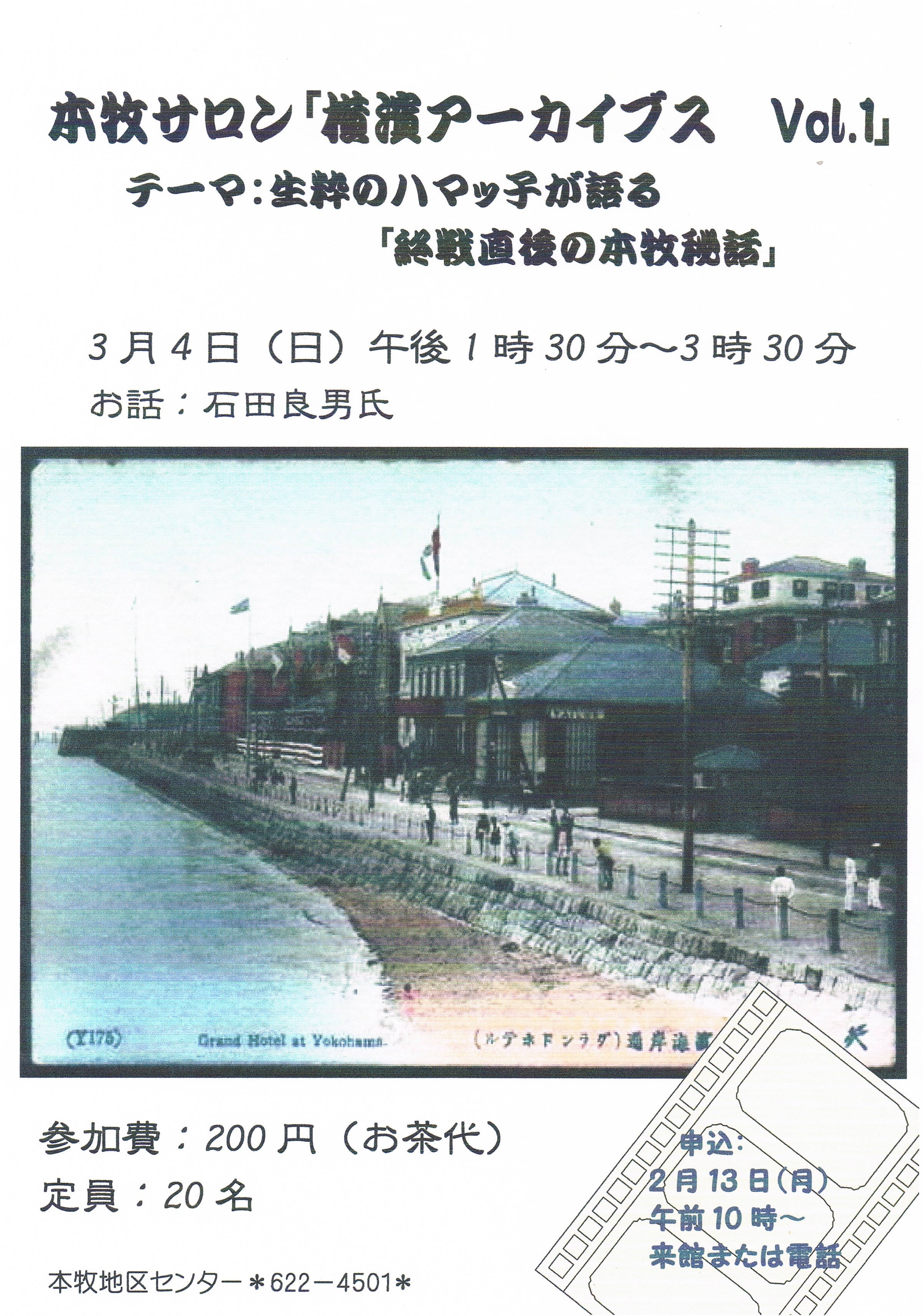 本牧在住もしくは本牧に関心の高いメンバーによって構成される「本牧メンズスタイル」による、この本牧、横浜の歴史、風土を多くの住民に知ってもらおうという企画。