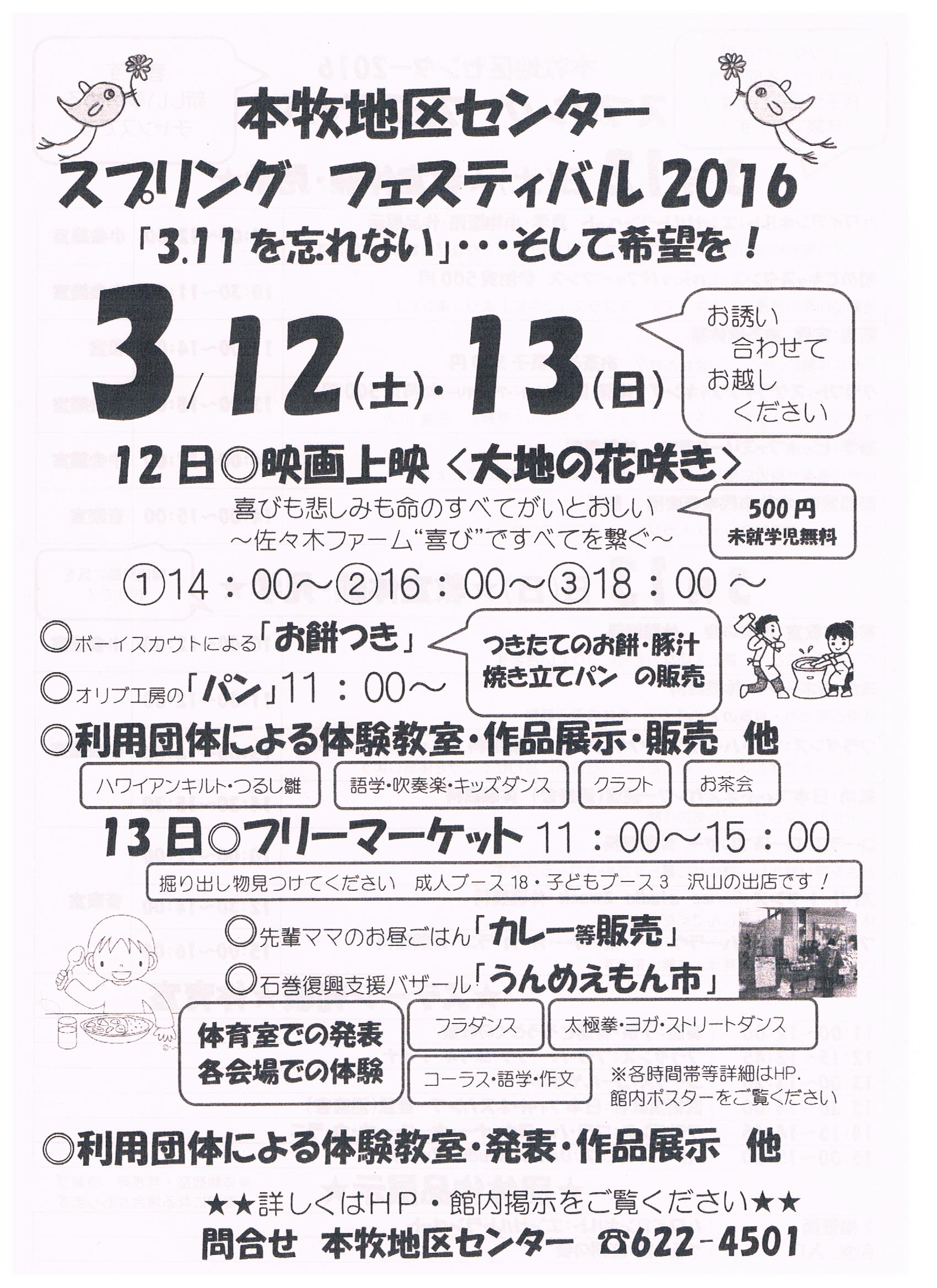 - この日は体育館でフェスティバルテーマの一つ「希望」を託した映画「大地の花咲き」上映があります。