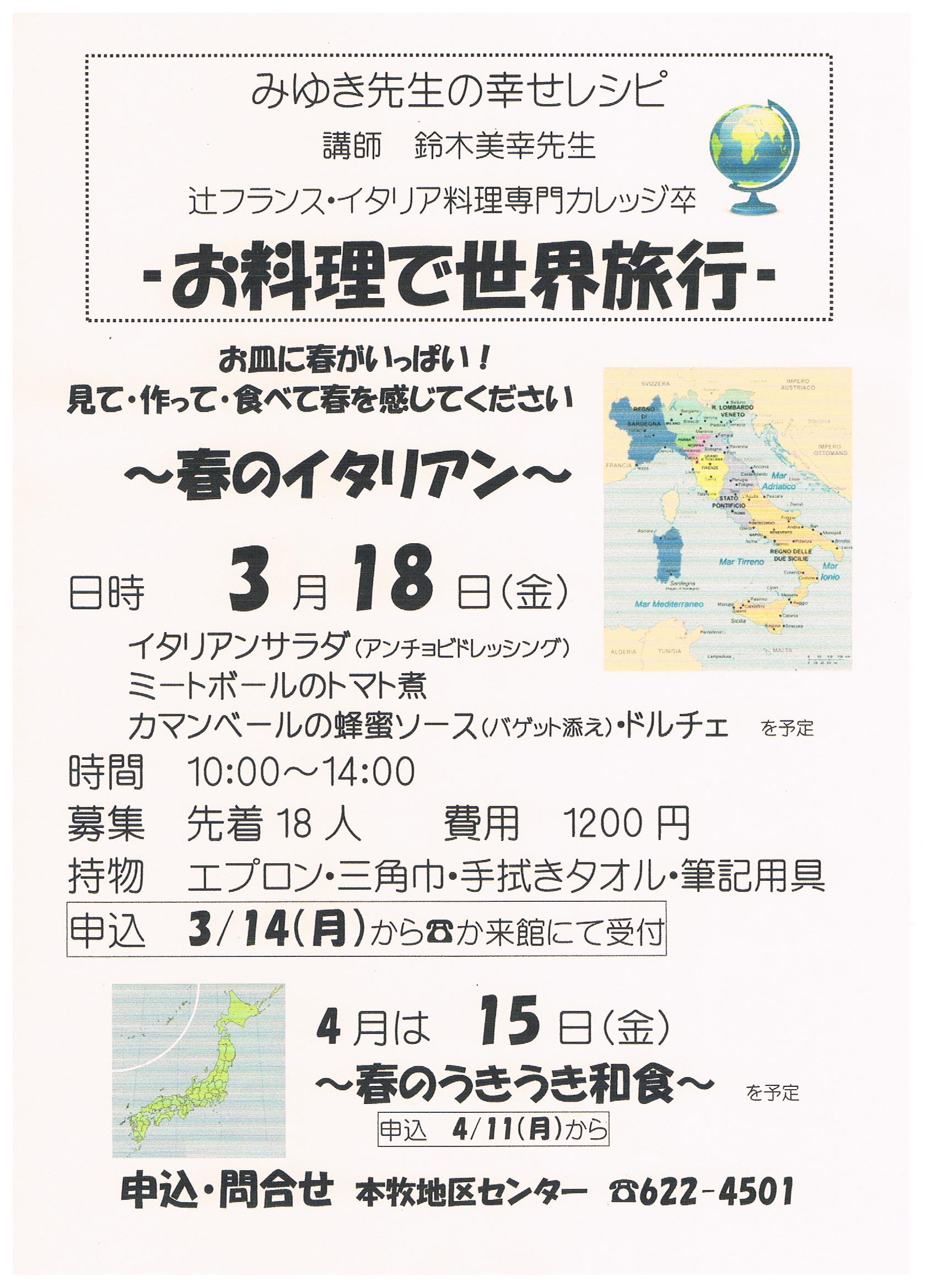 - 持ち物:エプロン・三角巾・手拭タオル・筆記用具