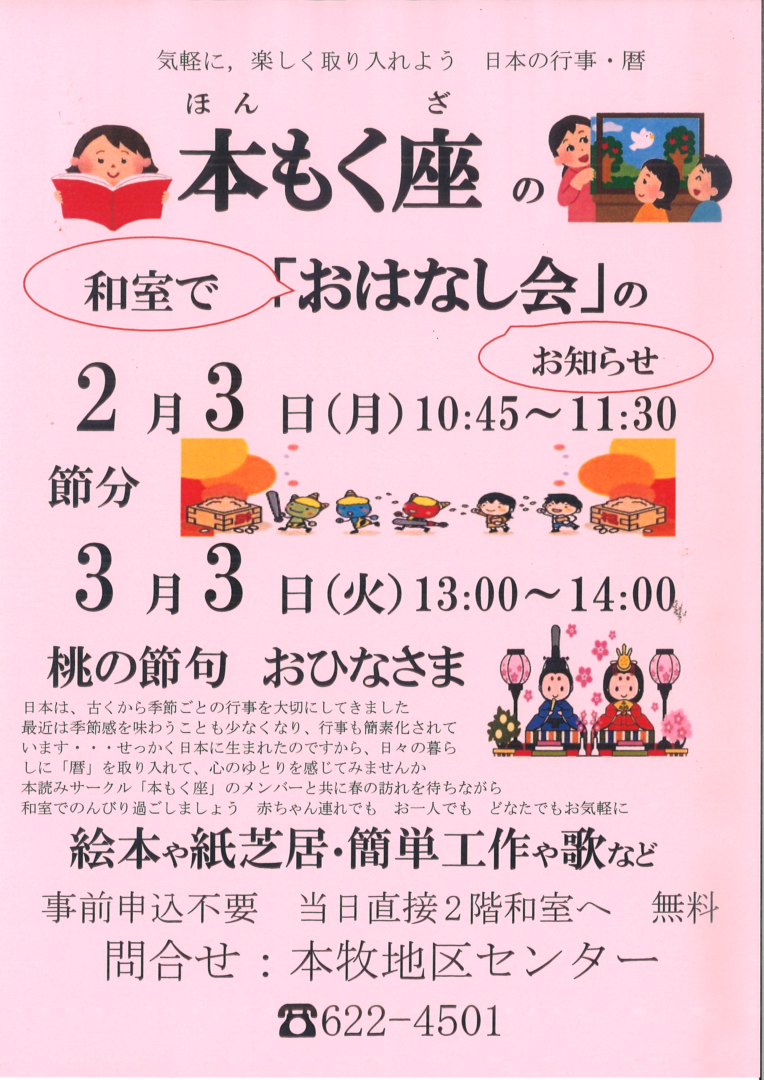 本もく座の 和室で「おはなし会」のお知らせ