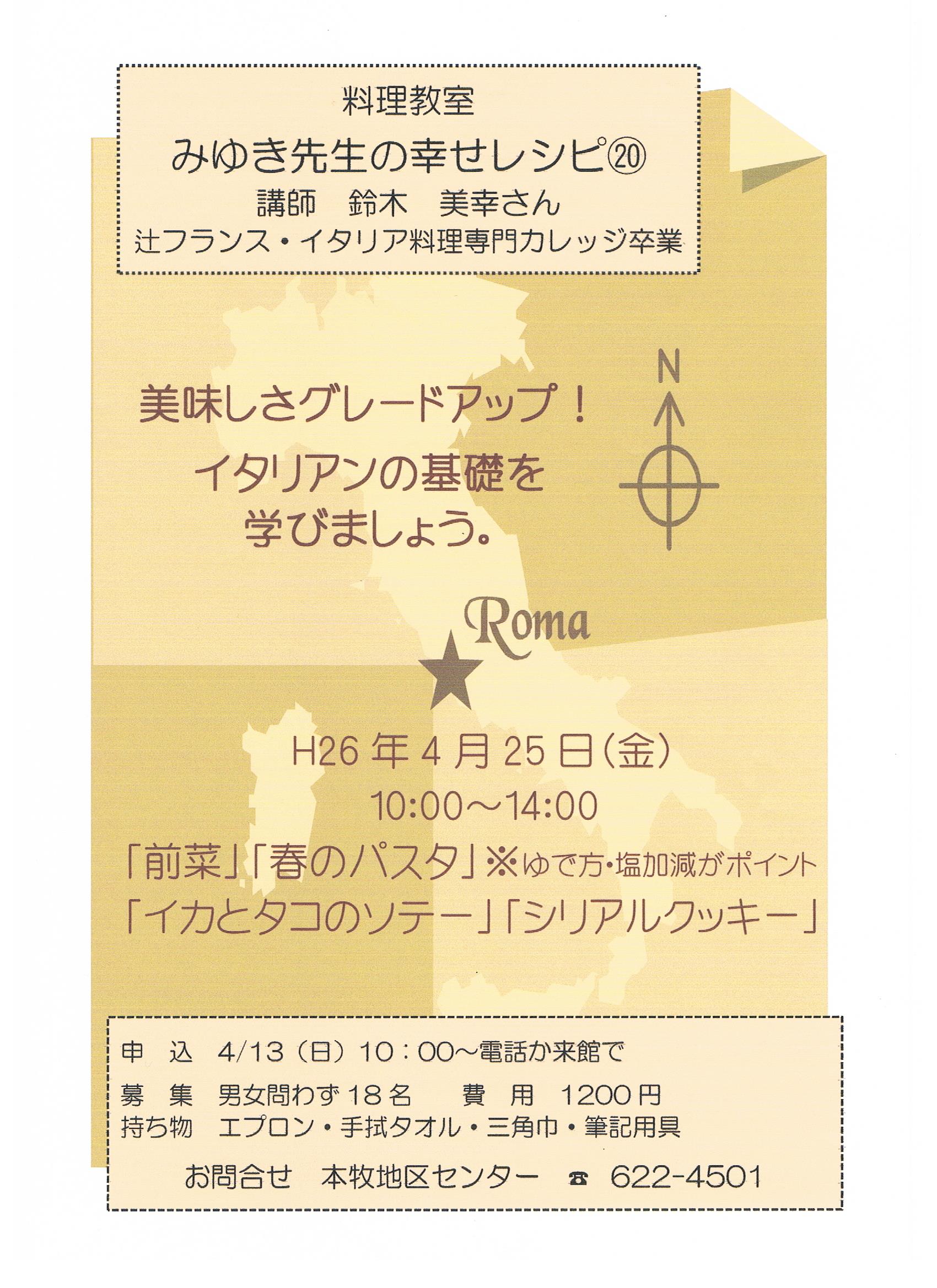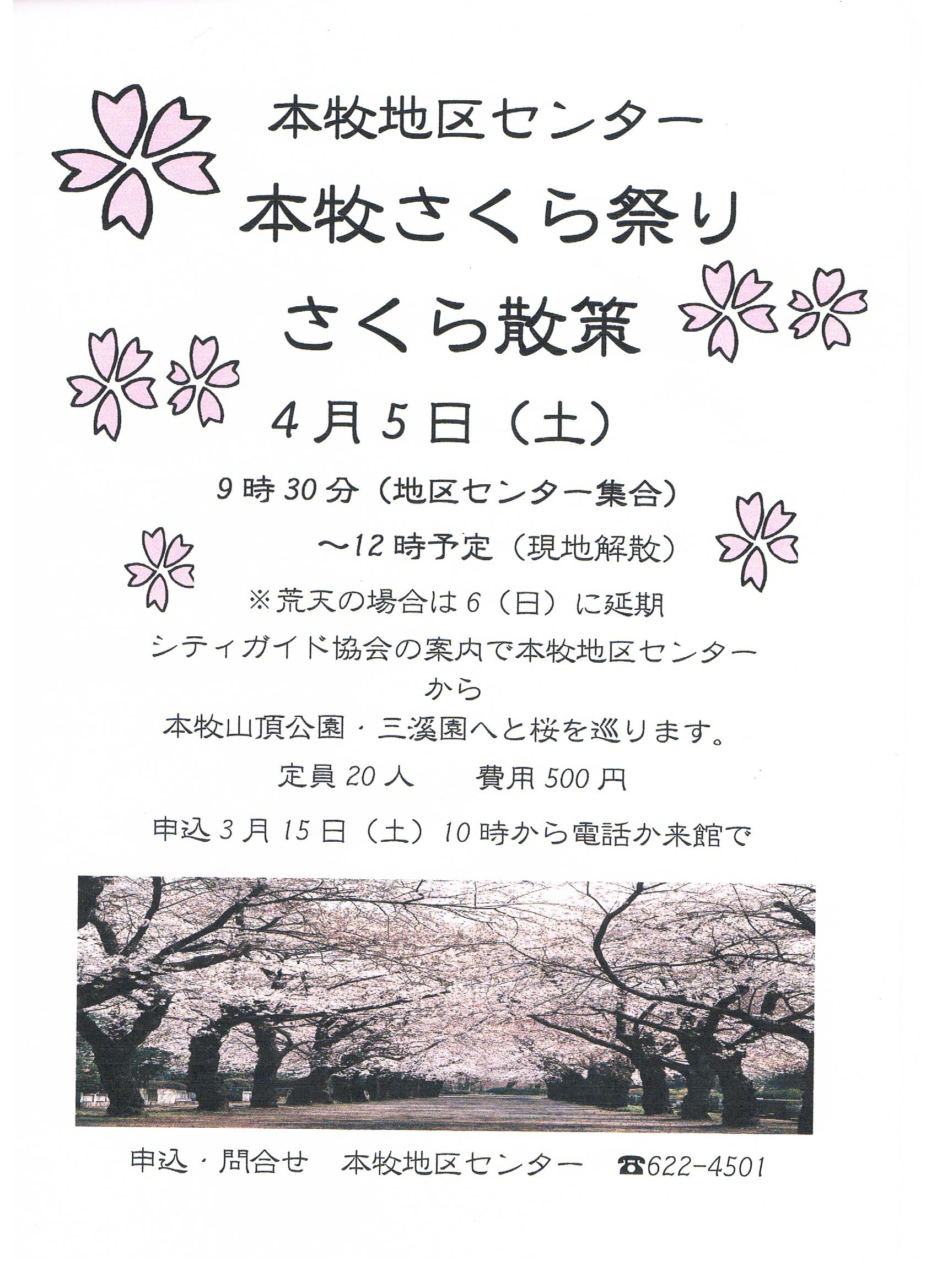 - H26年4月5日(土)9時30分(地区センター集合)~