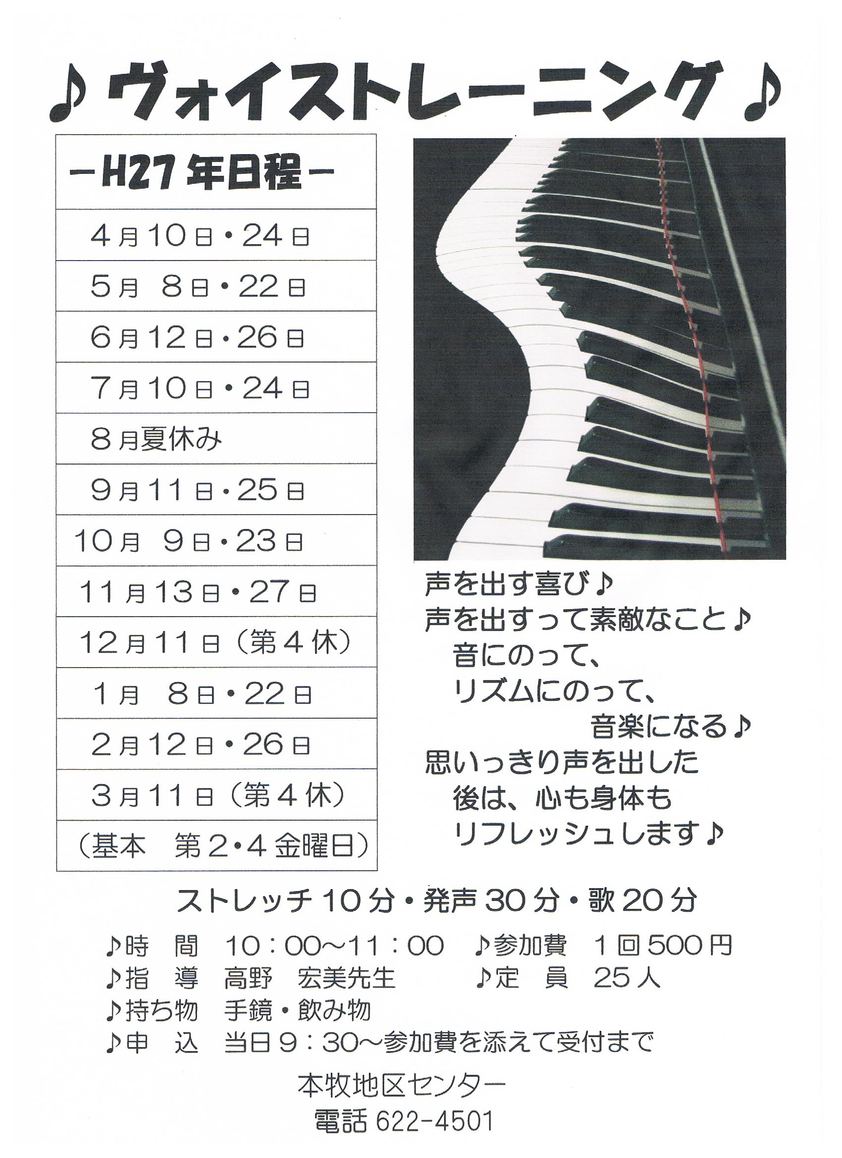 いずれも月曜日 10:30~11:30