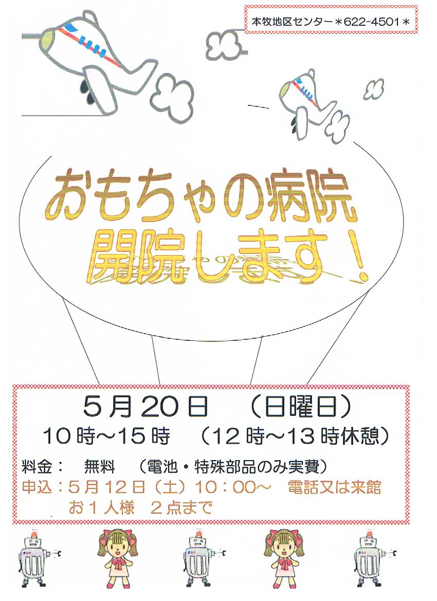 - 5/12(土)10時~ 事前予約・来館又は電話