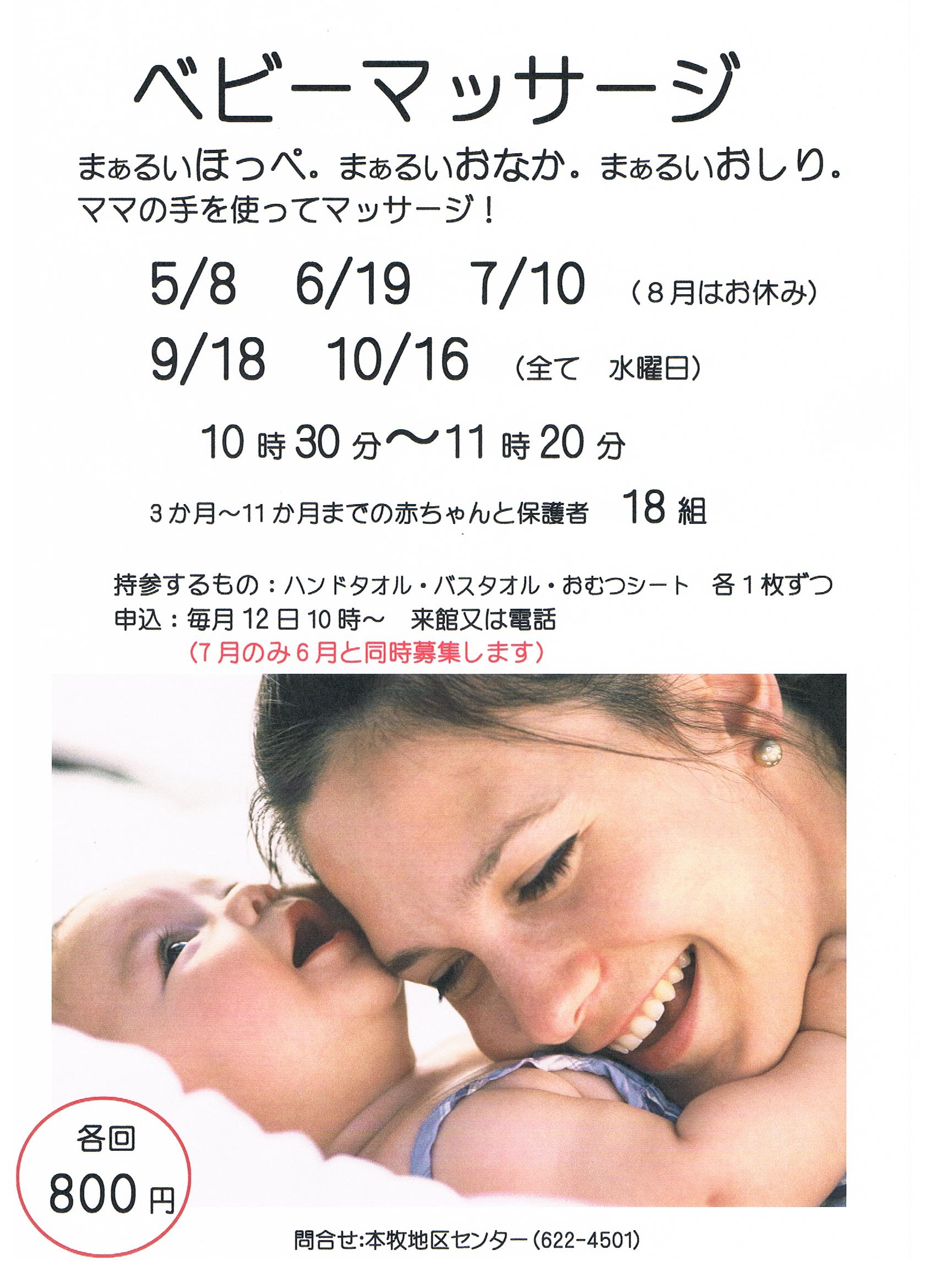 - 持参するもの:ハンドタオル・バスタオル・おむつシート