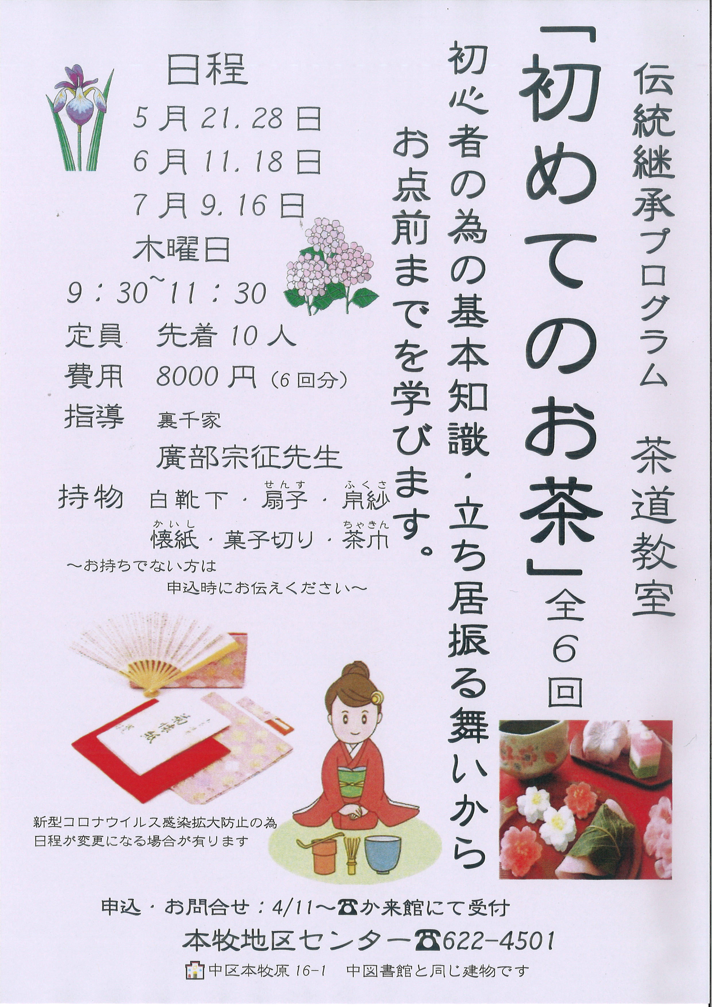 - 4/11~☎か来館にて受付