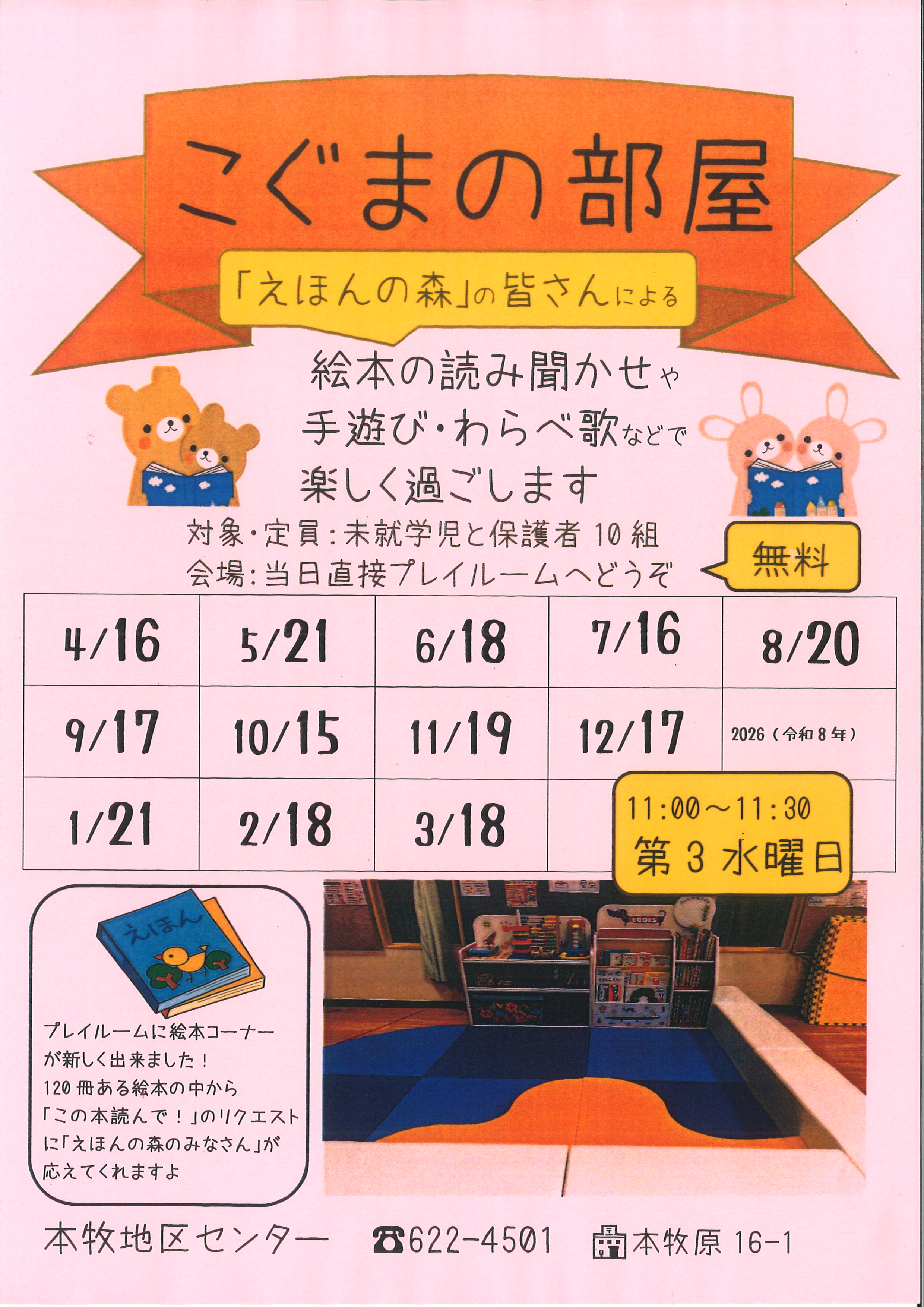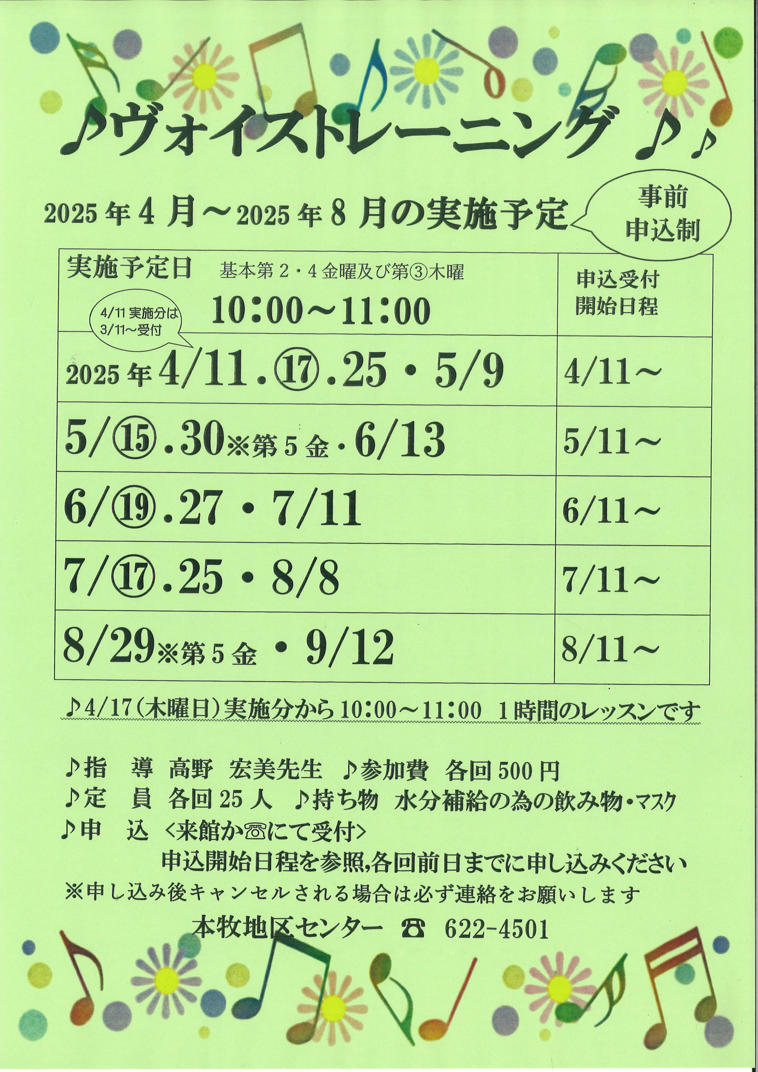 - 4/11~☏か来館にて受付
