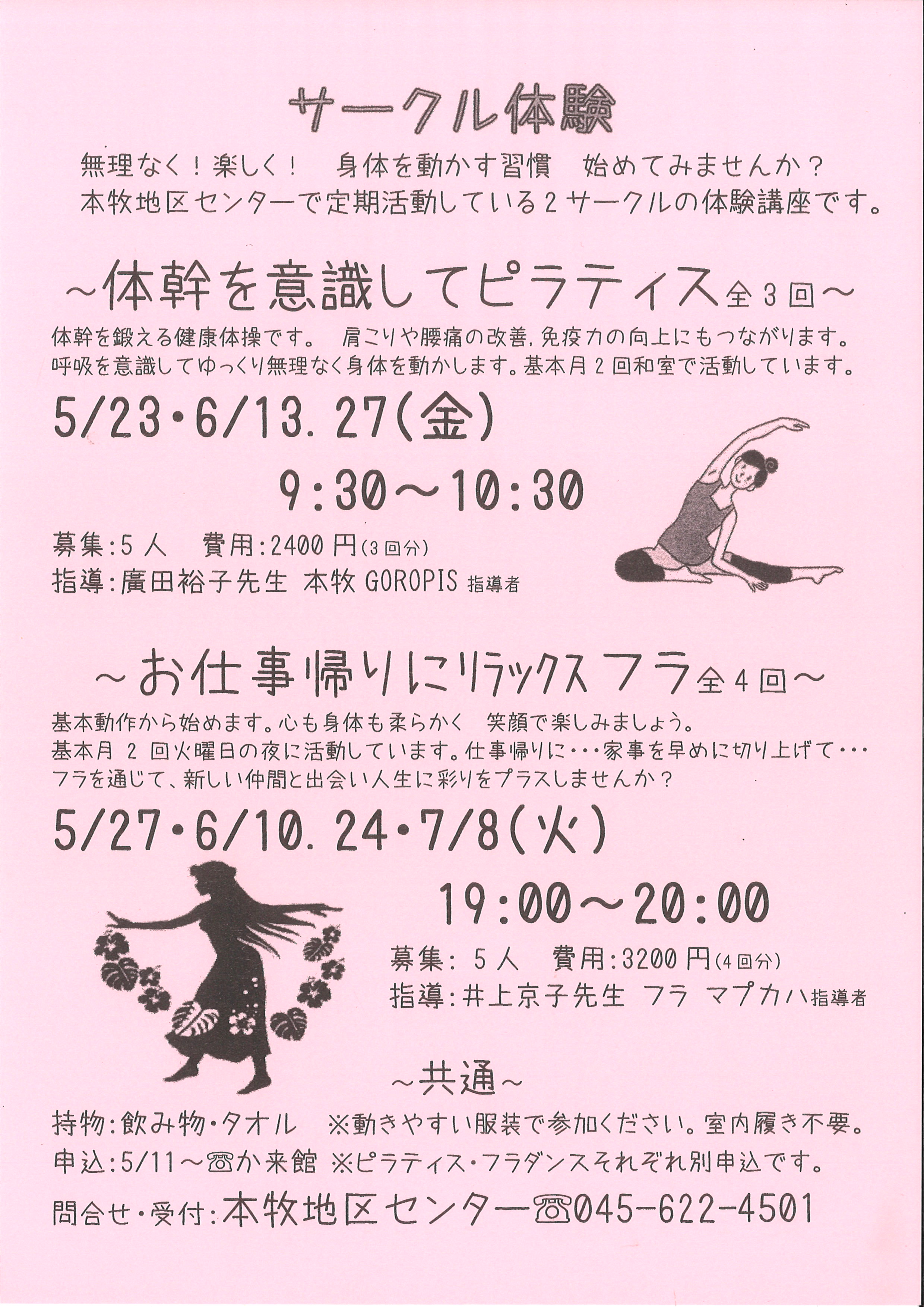 2サークル(他にはフラダンス)の体験講座です