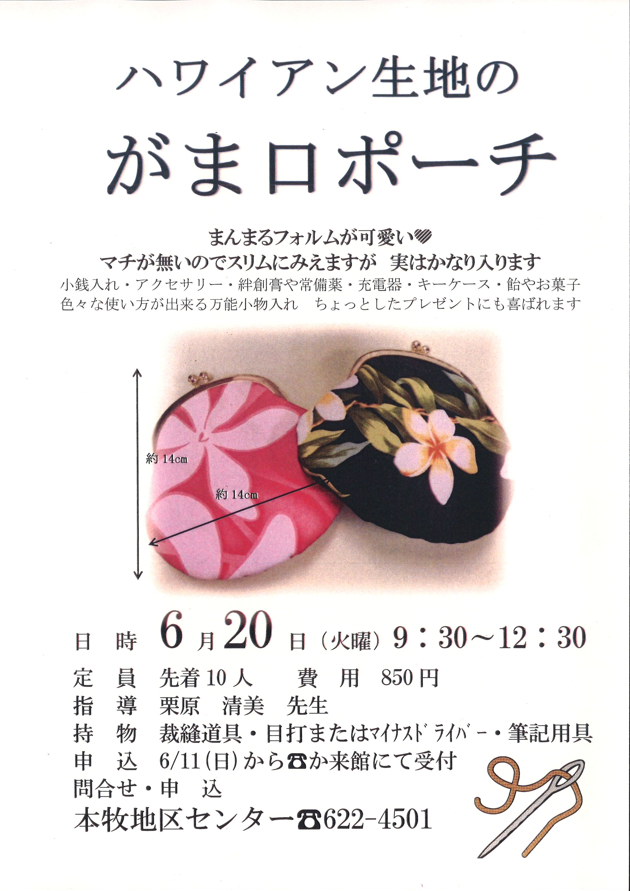- 持物:裁縫道具・目打ちかマイナスドライバー・筆記用具