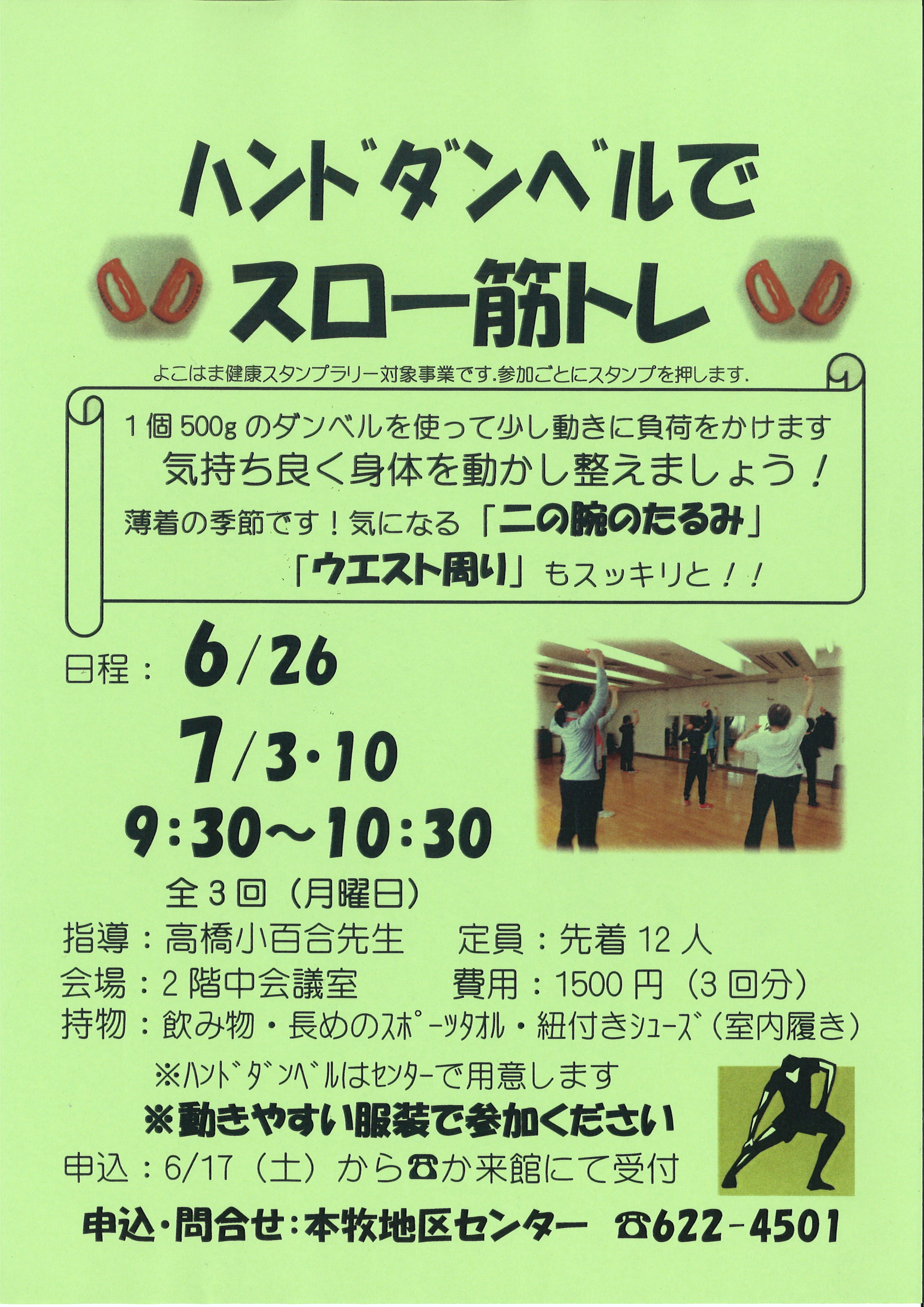 ※ハンドダンベルは地区センターで用意します