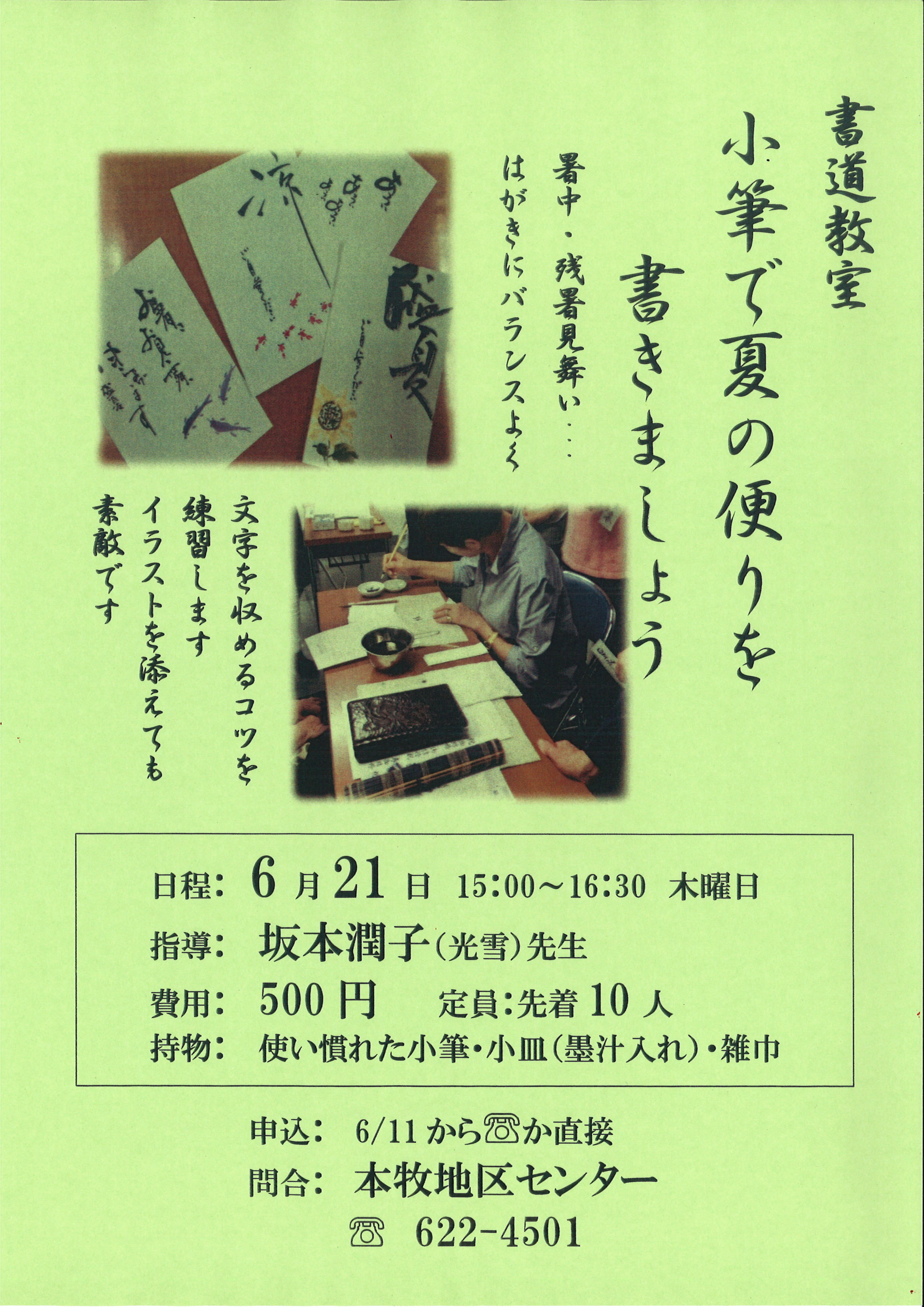 - 持物:使い慣れた小筆・小皿(墨汁入れ)・雑巾
