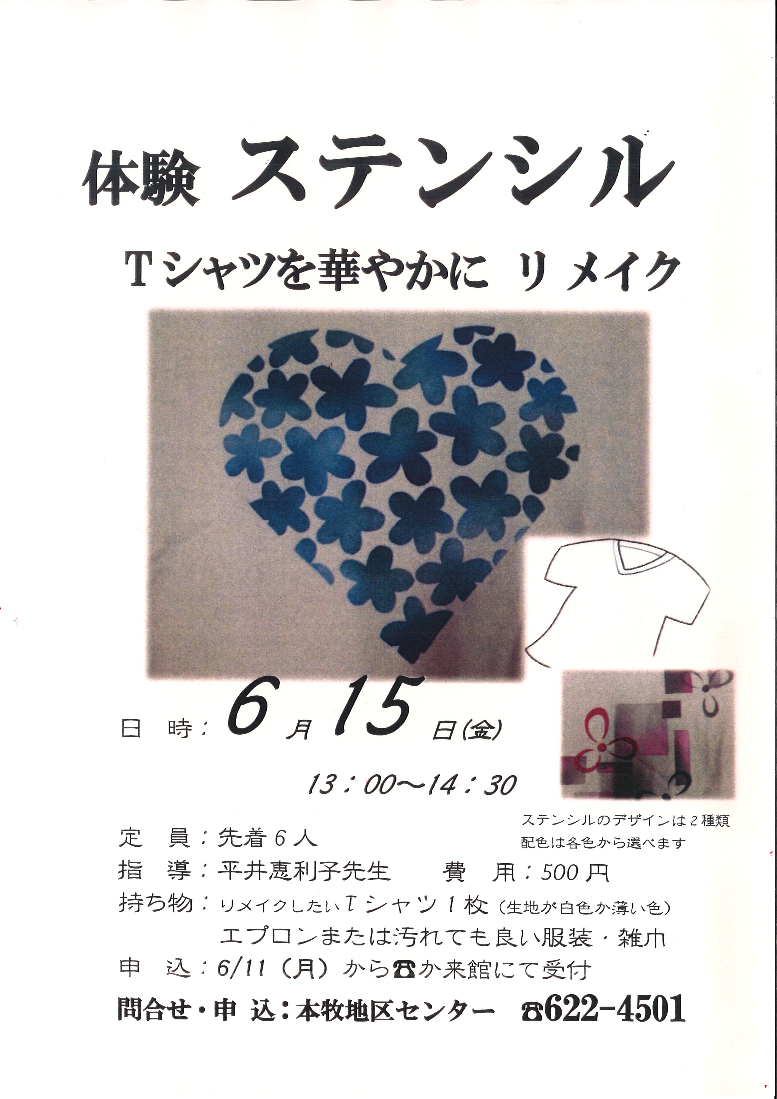 - 持物:エプロンまたは汚れても良い服装で参加ください
