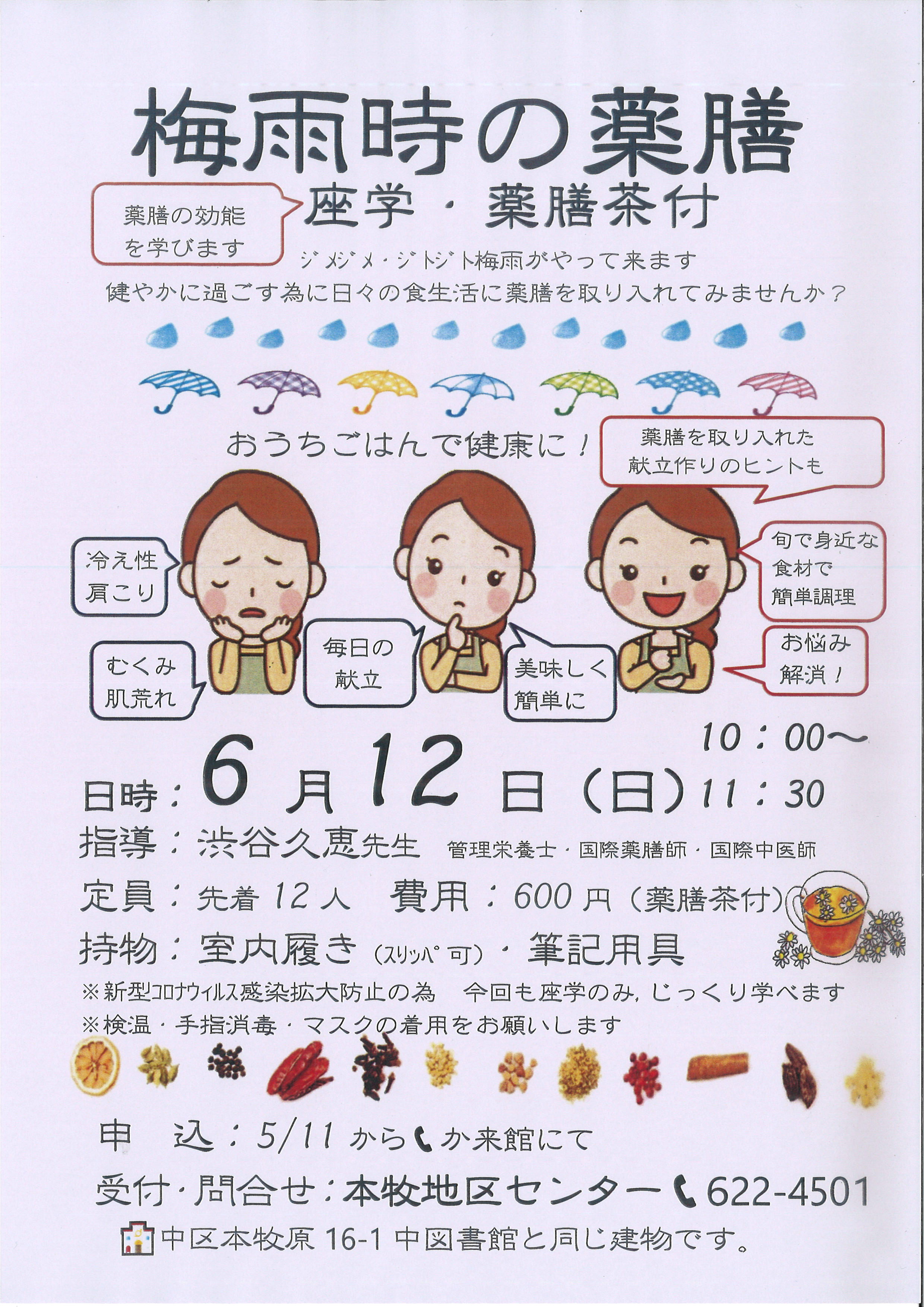 梅雨時の薬膳(座学・薬膳茶付)