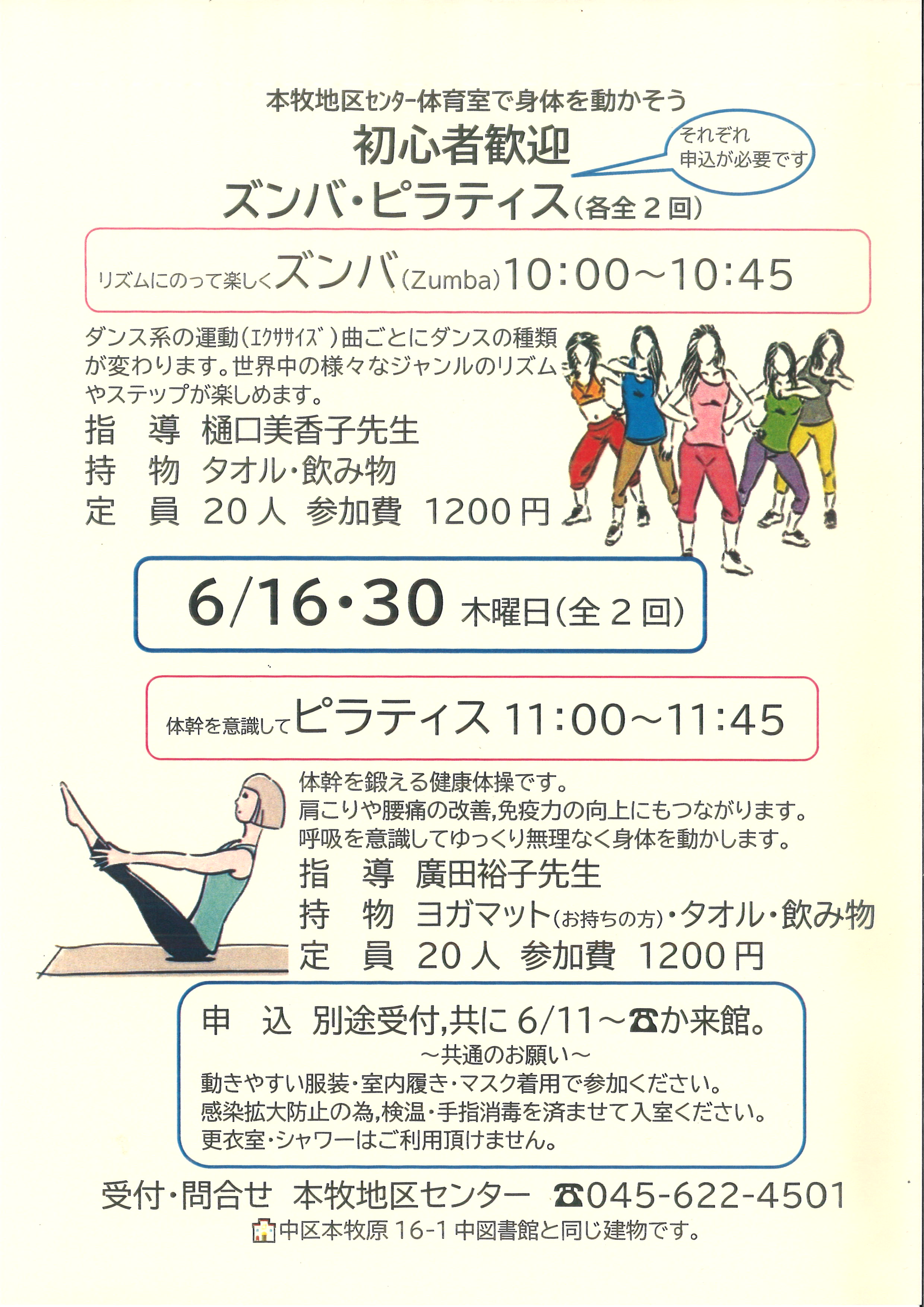 - 持物:ヨガマット(お持ちの方)・タオル・飲み物