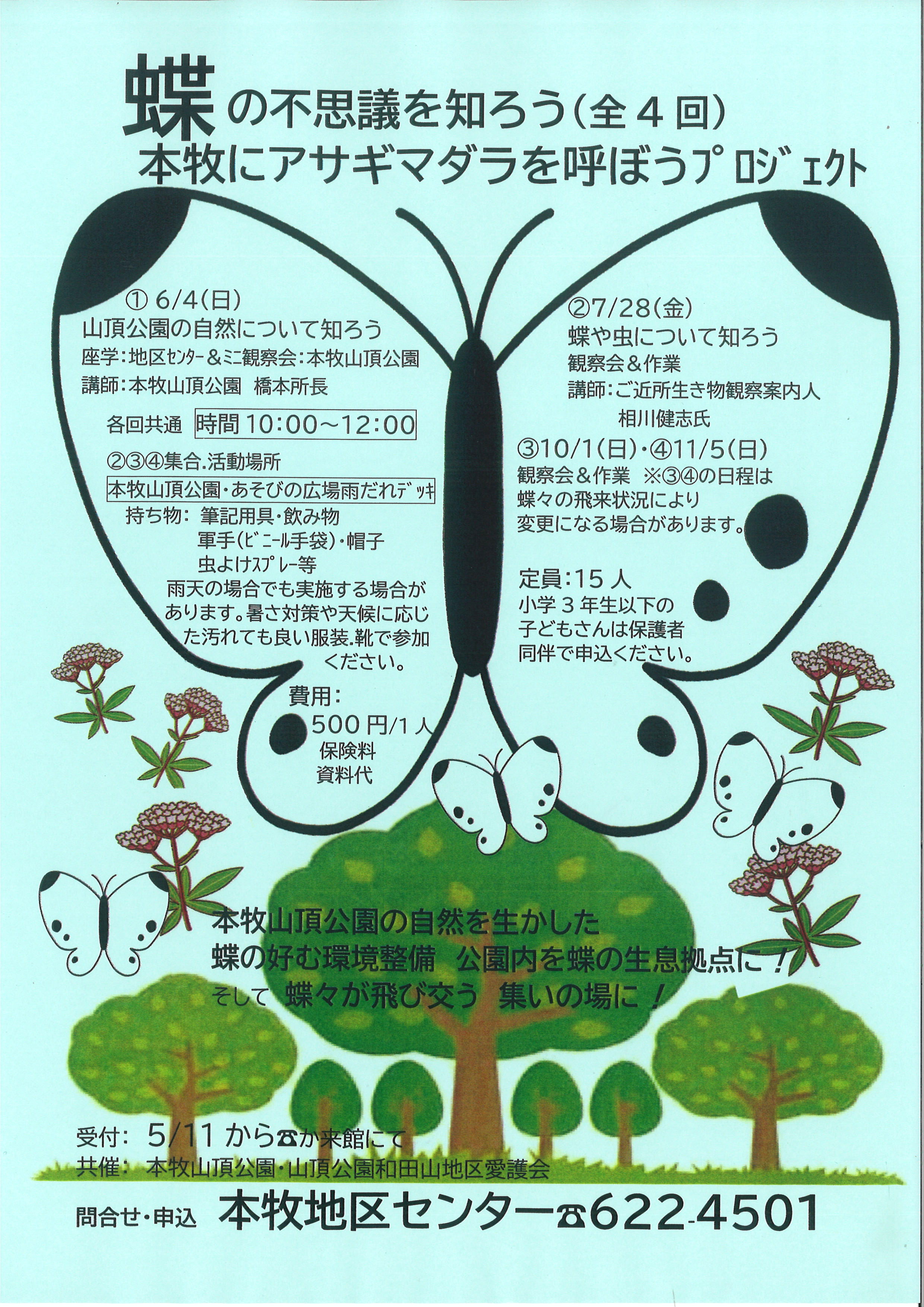 持物:筆記用具・飲み物・軍手(ビニール手袋)・帽子・虫よけスプレー等