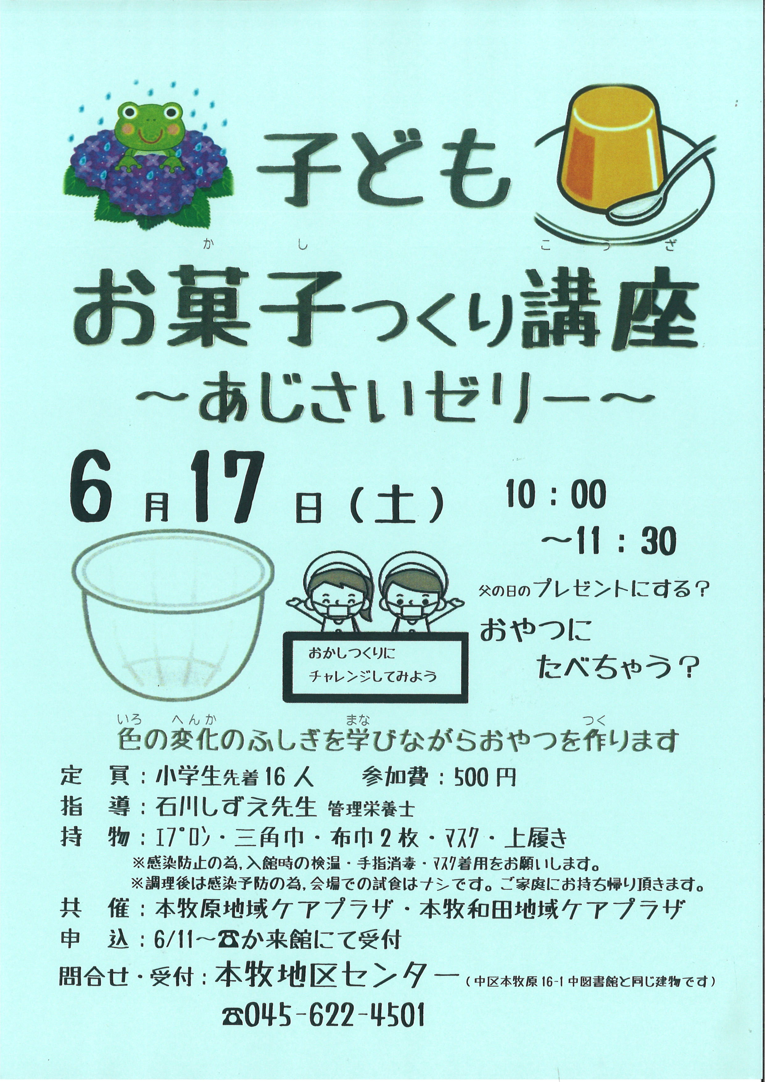 - 持物:エプロン・三角巾・マスク・布巾2枚(台拭き・手拭き)・室内履き(スリッパ不可)