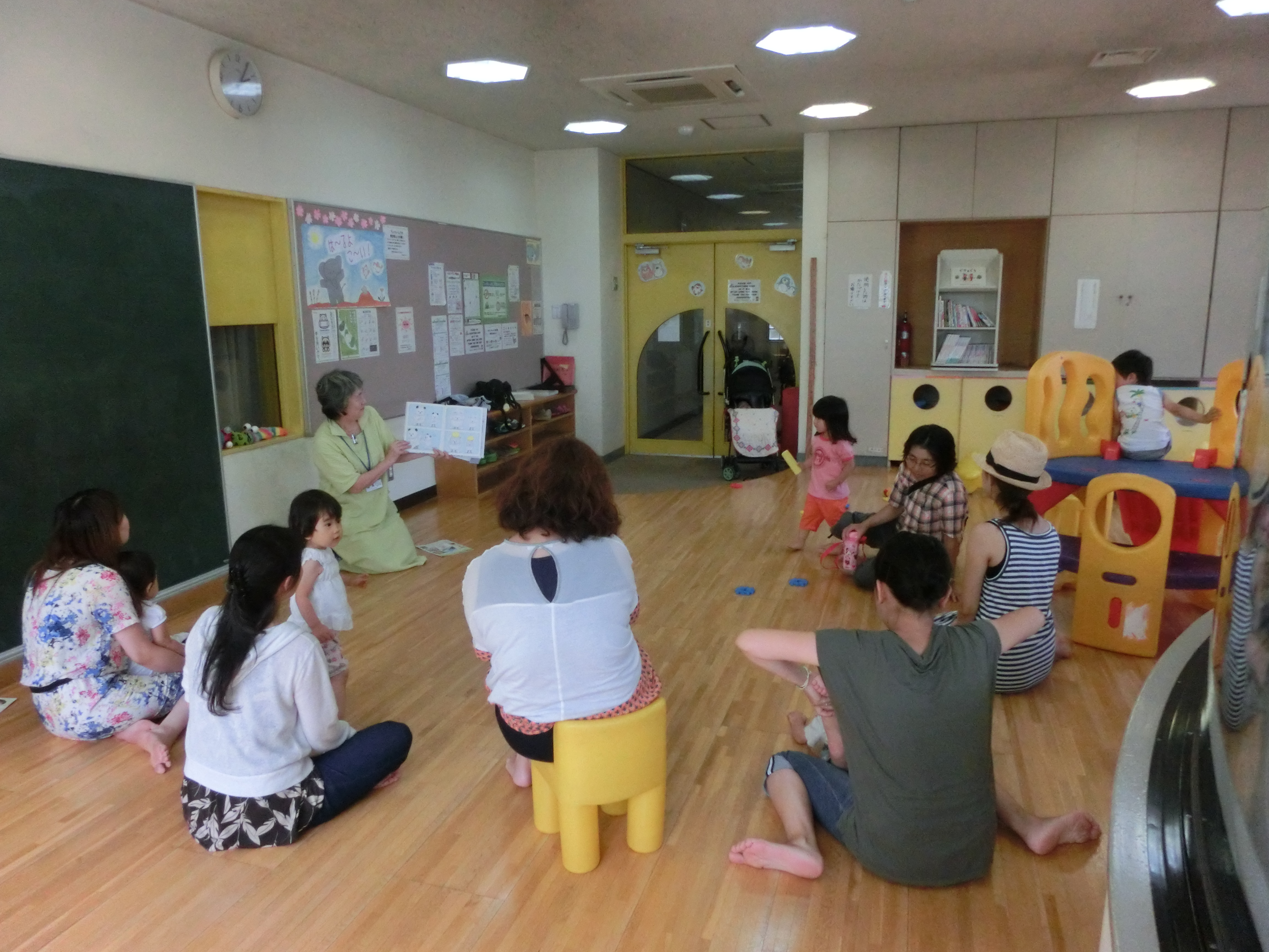 絵本の読み聞かせと、わらべ歌を歌い、手遊びを楽しみます。