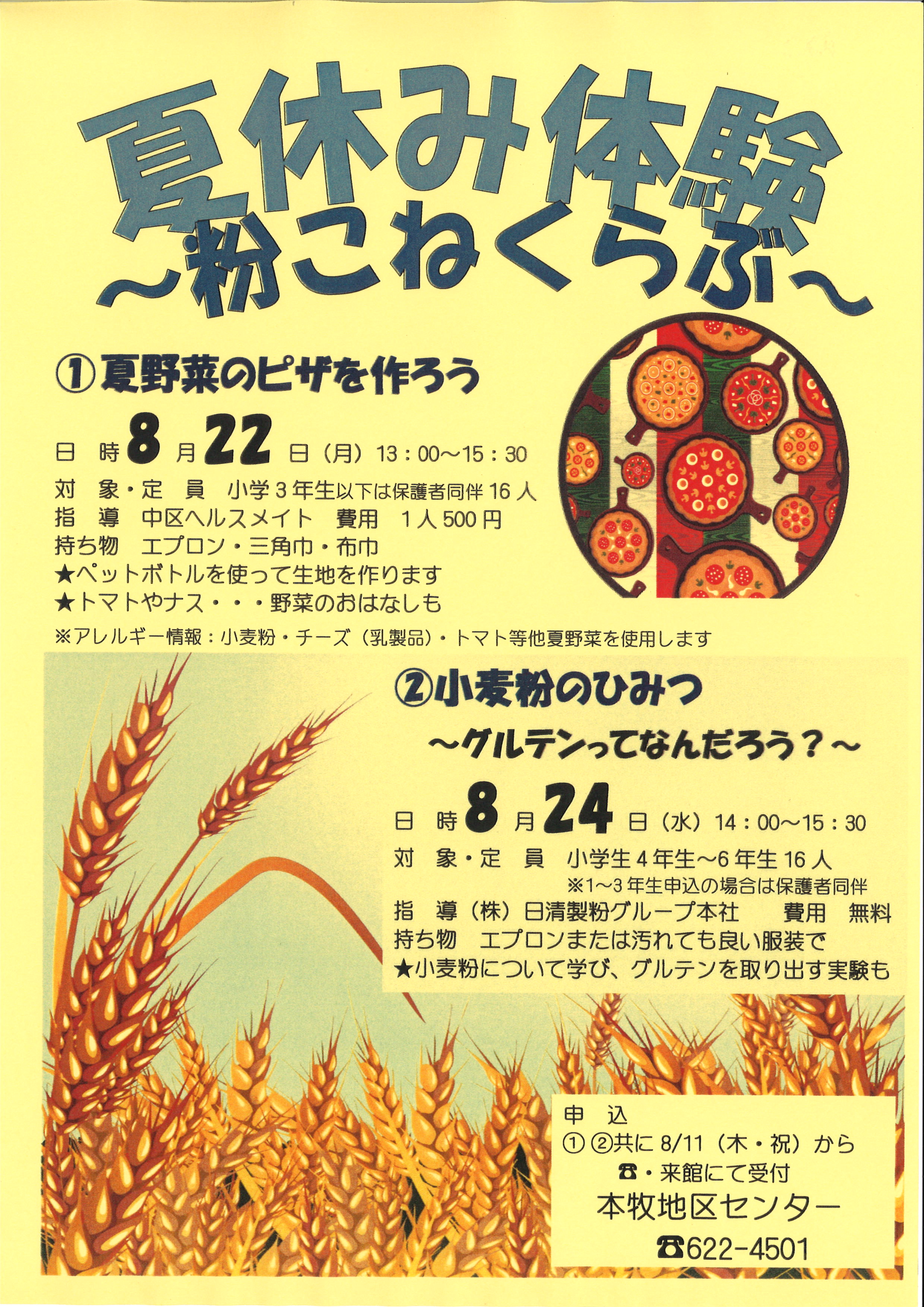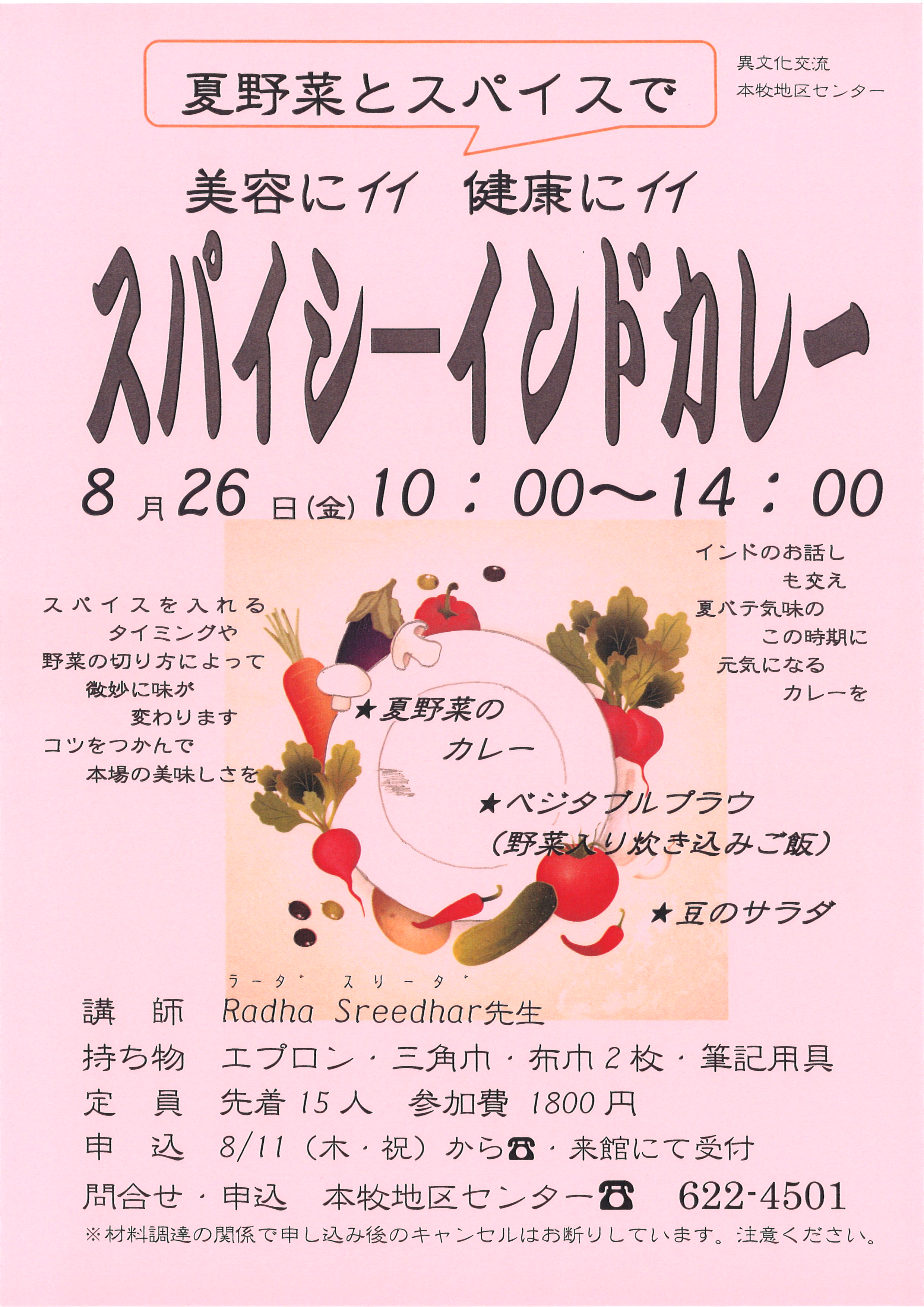 - 持ち物:エプロン・三角巾・布巾2枚・筆記用具