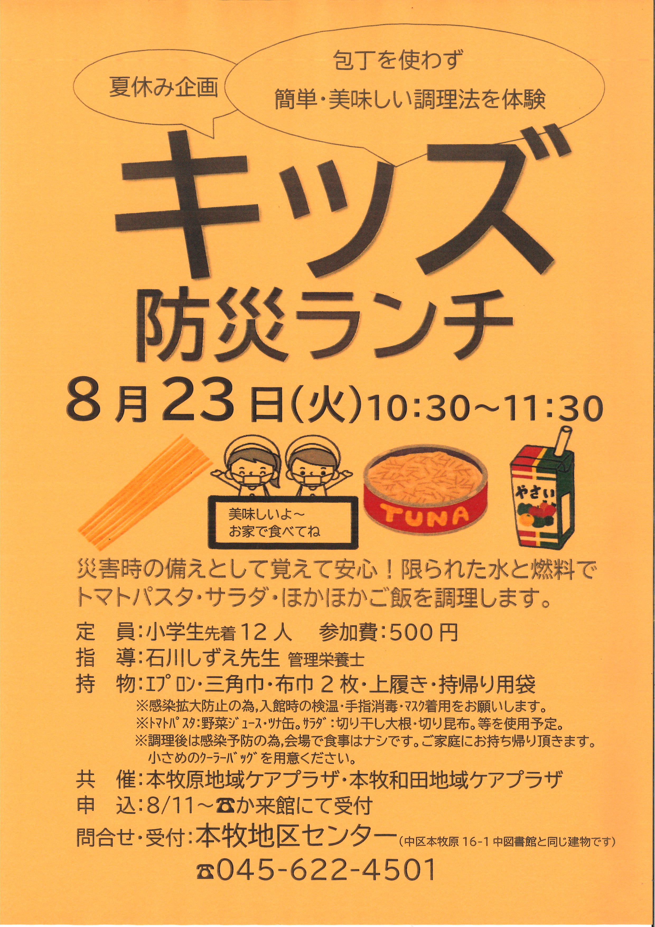 - 持物:エプロン・三角巾・布巾2枚・上履き
