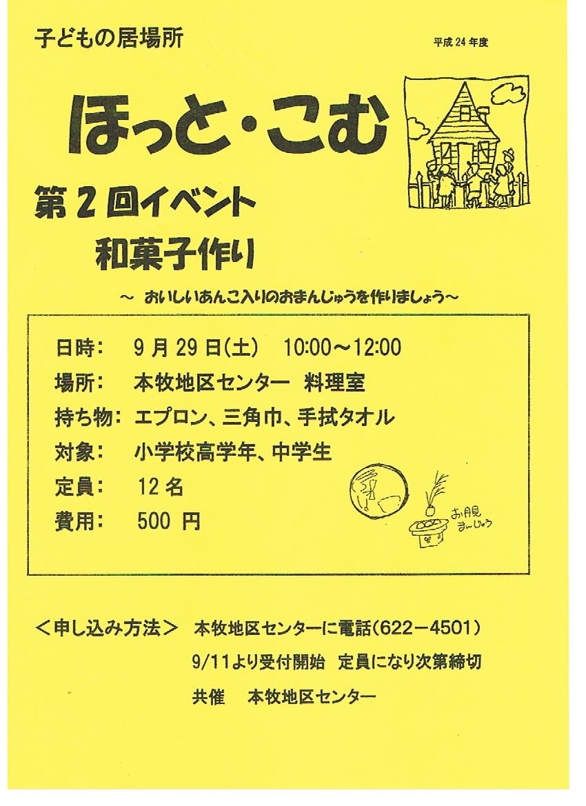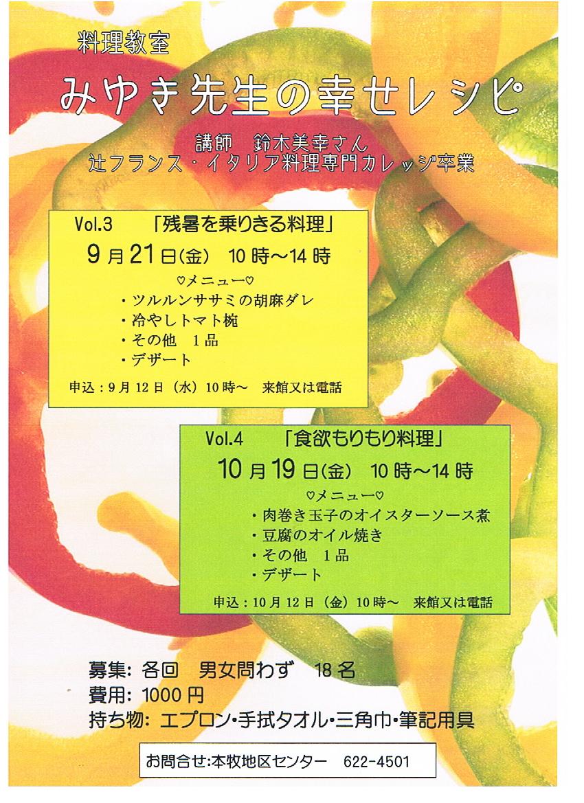 - 持ち物:エプロン・手拭タオル・三角巾・筆記用具