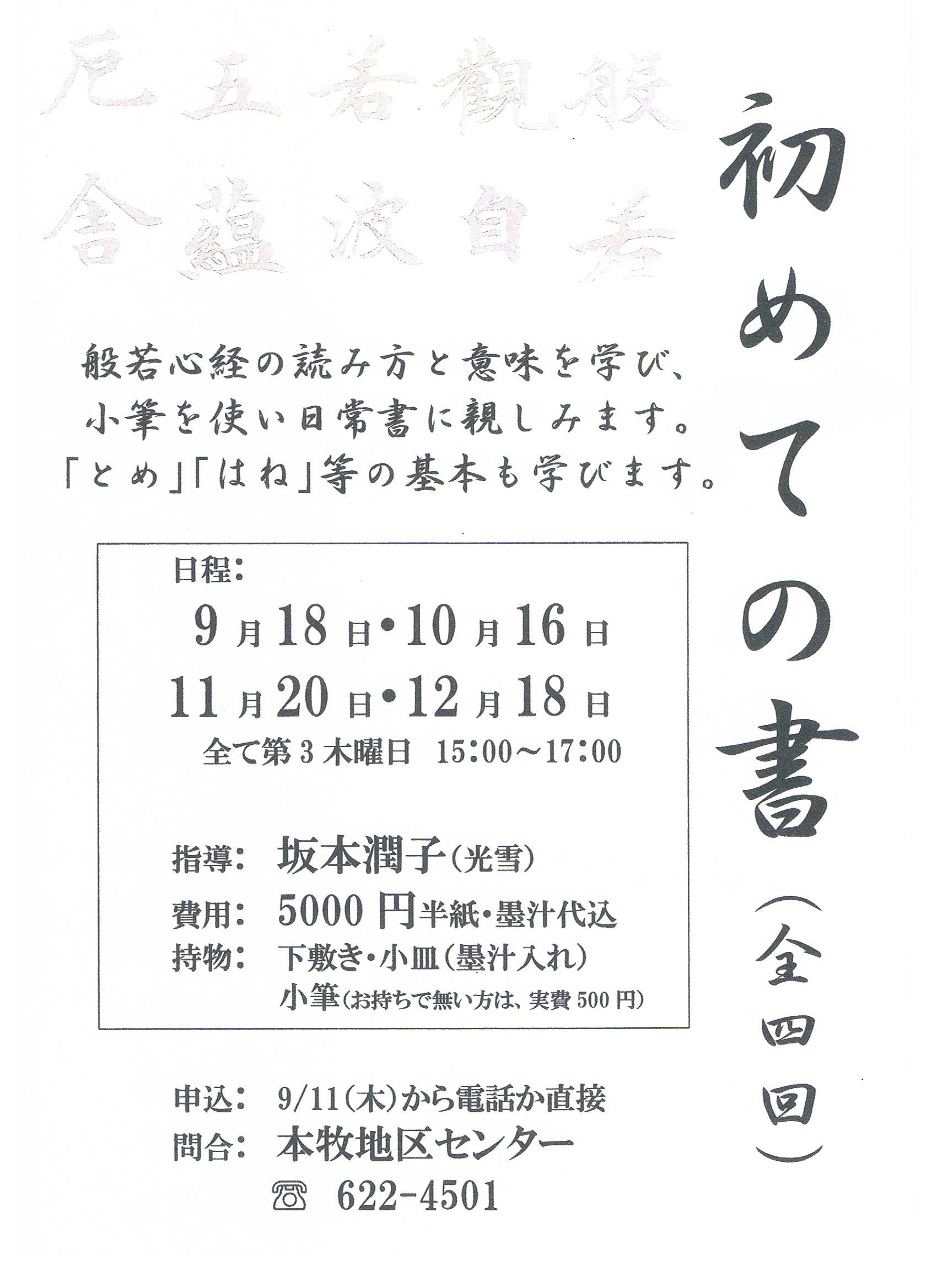 9/1.8.22 10/6.20.27 11/10.17 12/1.8.22 ≪全11回≫ 9:30~10:30