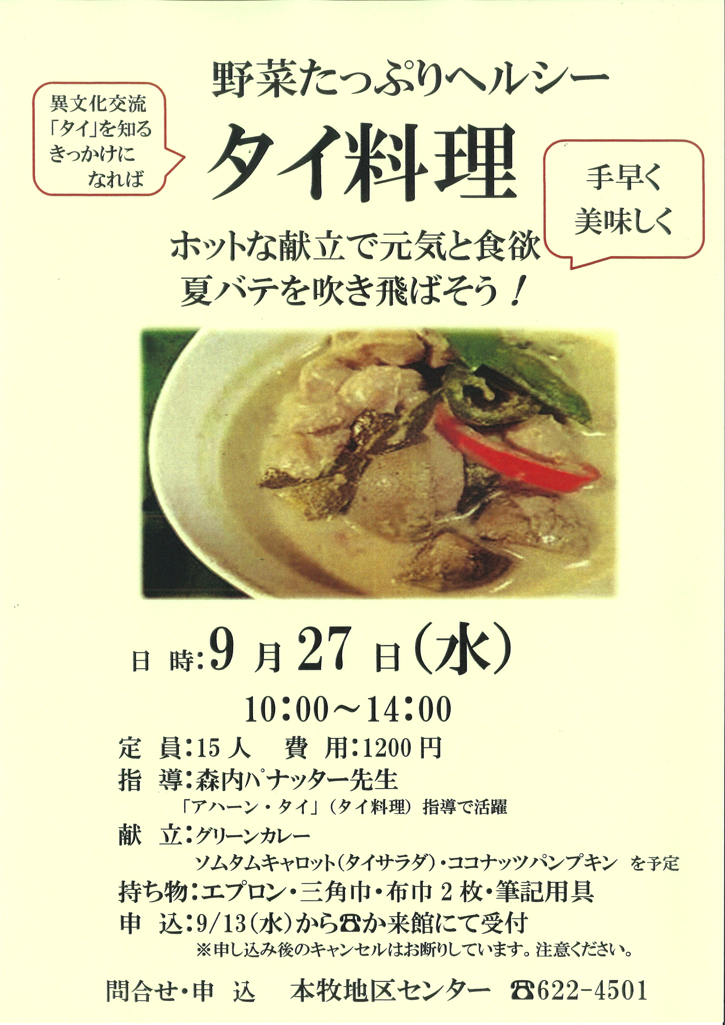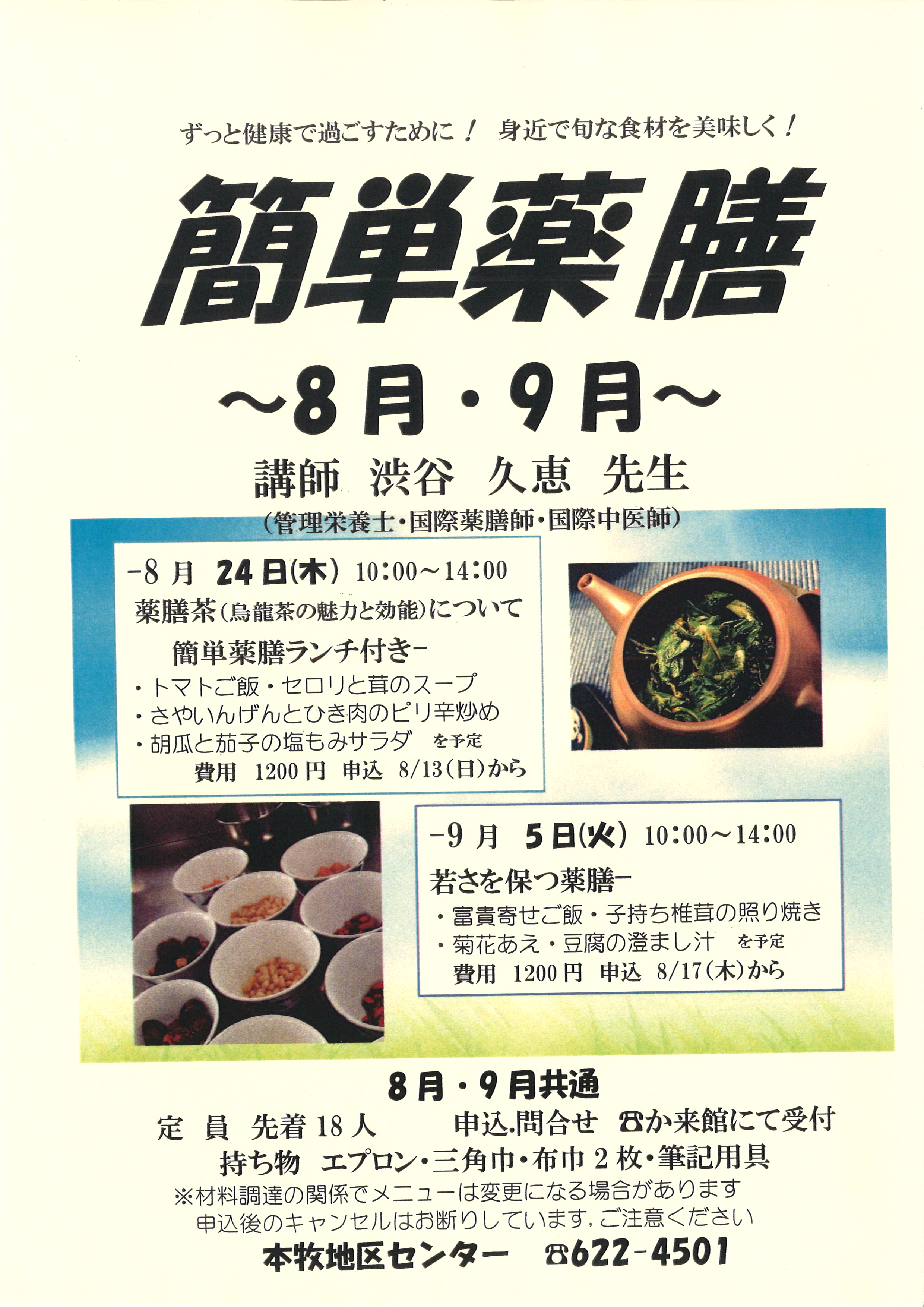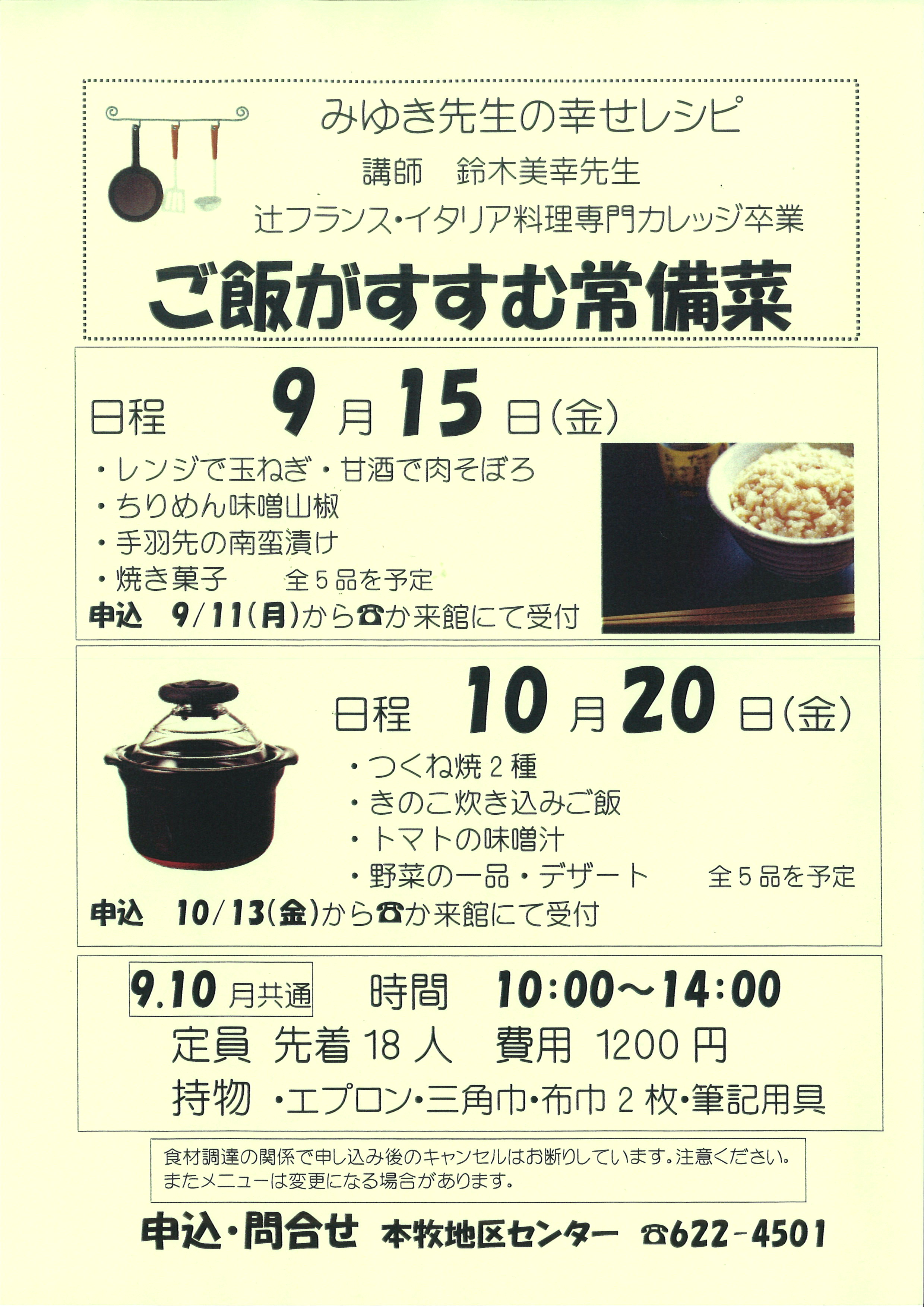 - 持物:エプロン・三角巾・布巾2枚・筆記用具