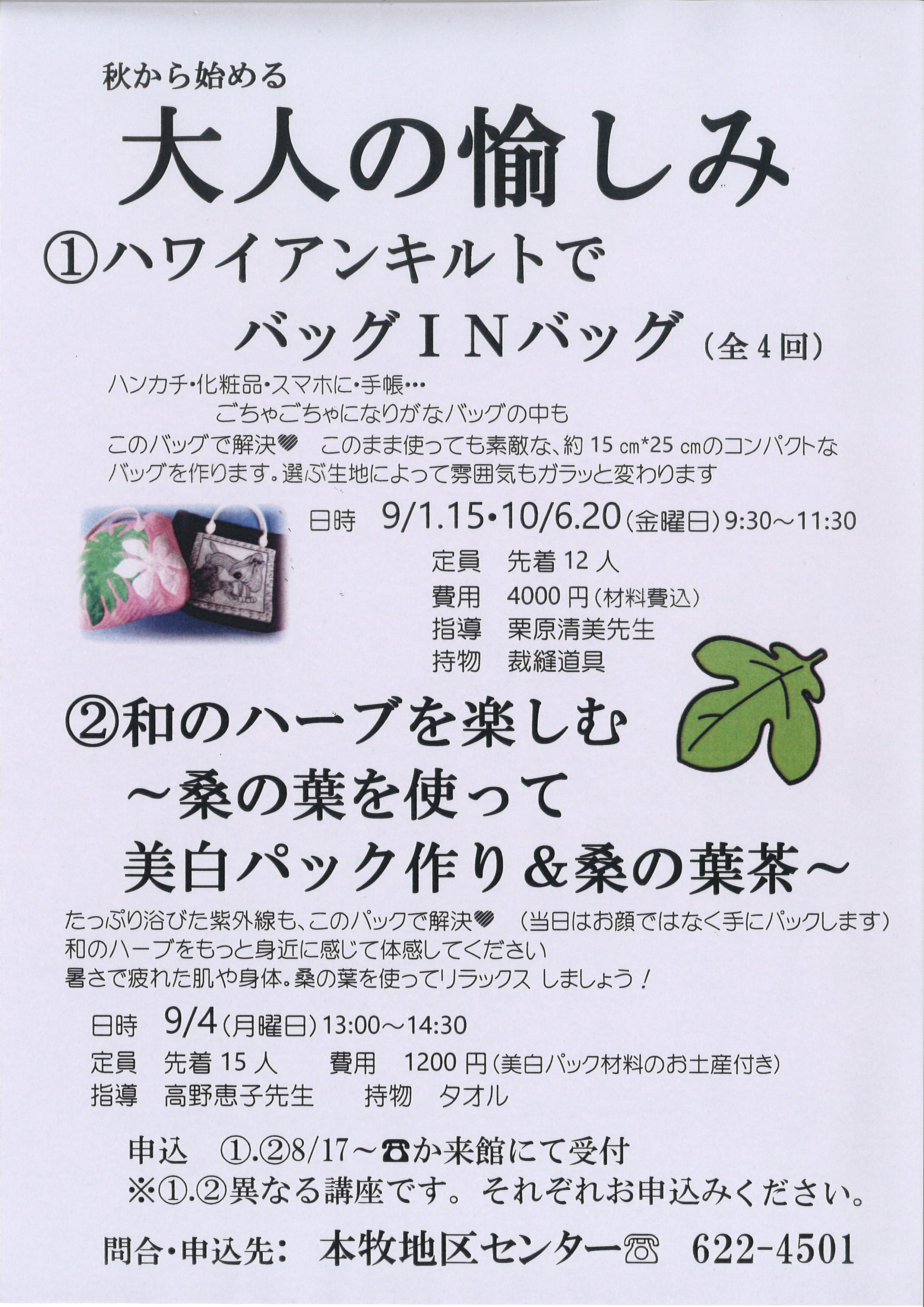 和のハーブを楽しむ ~桑の葉を使って 美白パック作り&桑の葉茶