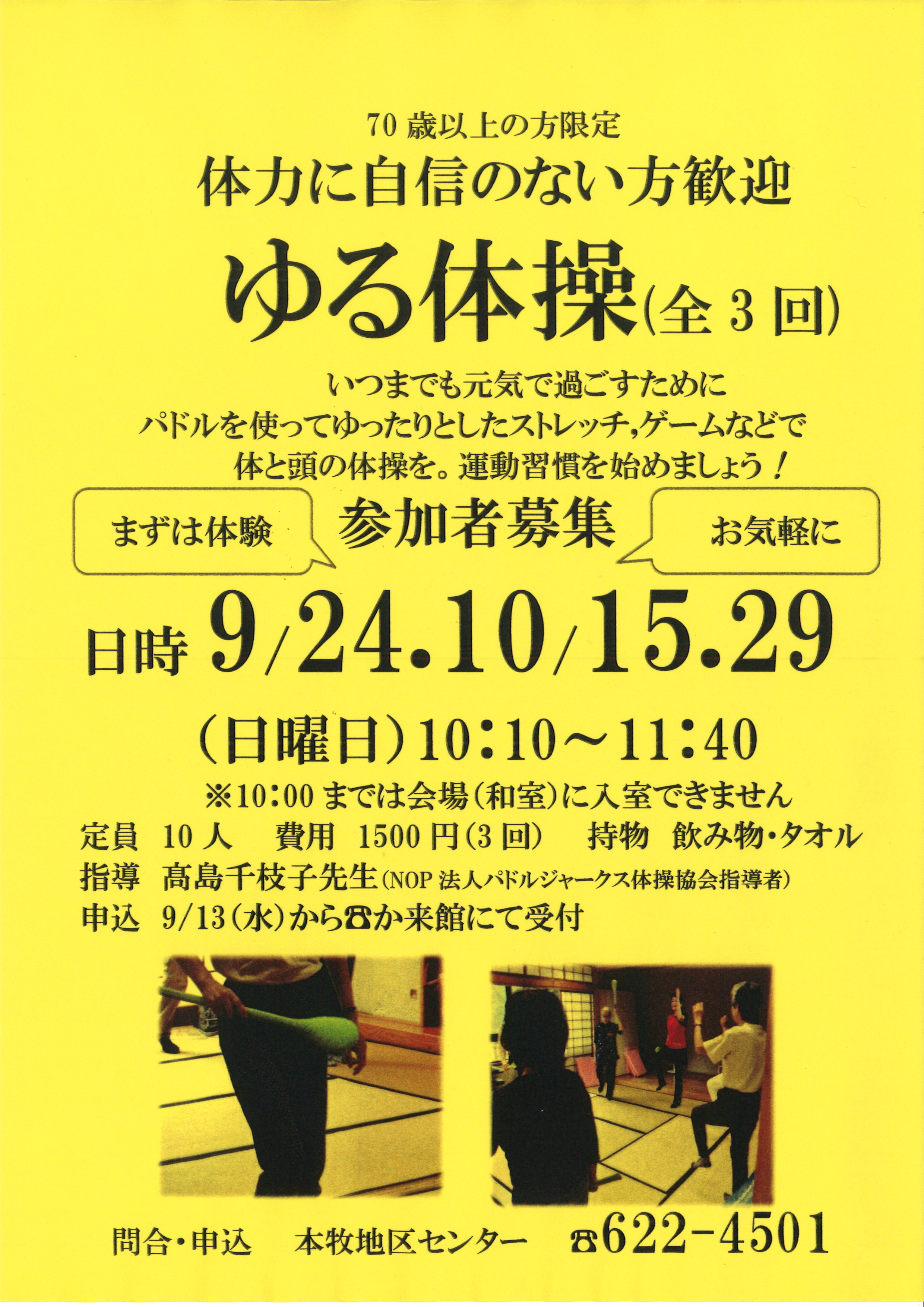 10/29は中会議室で実施 室内履き(上履き)持参ください