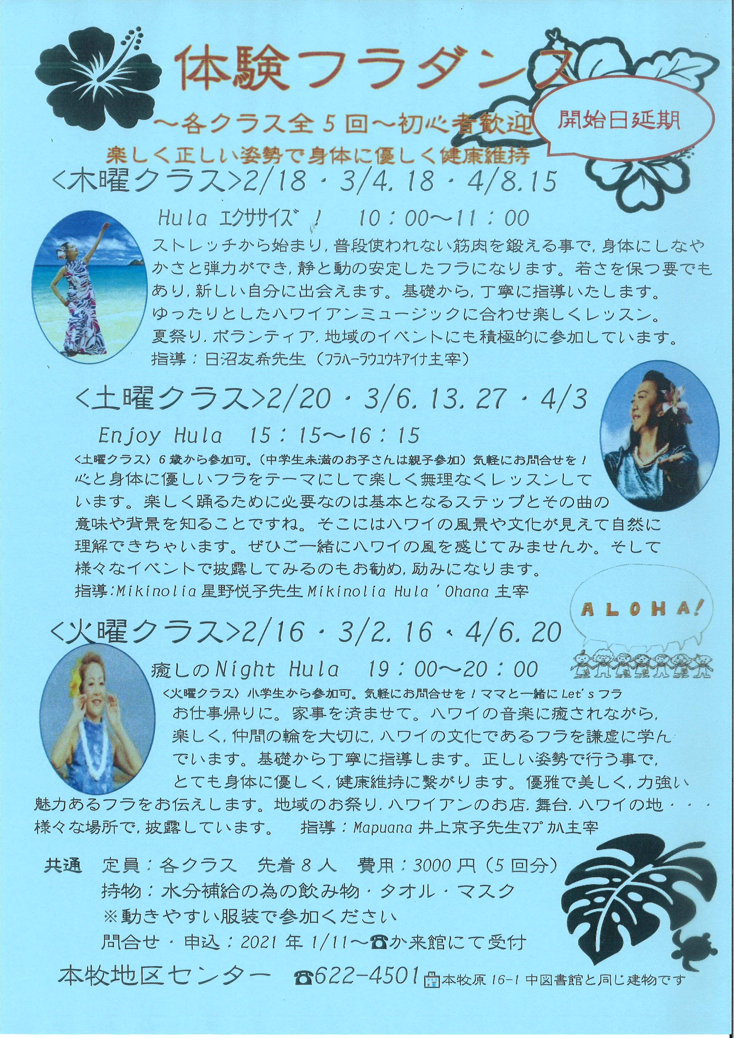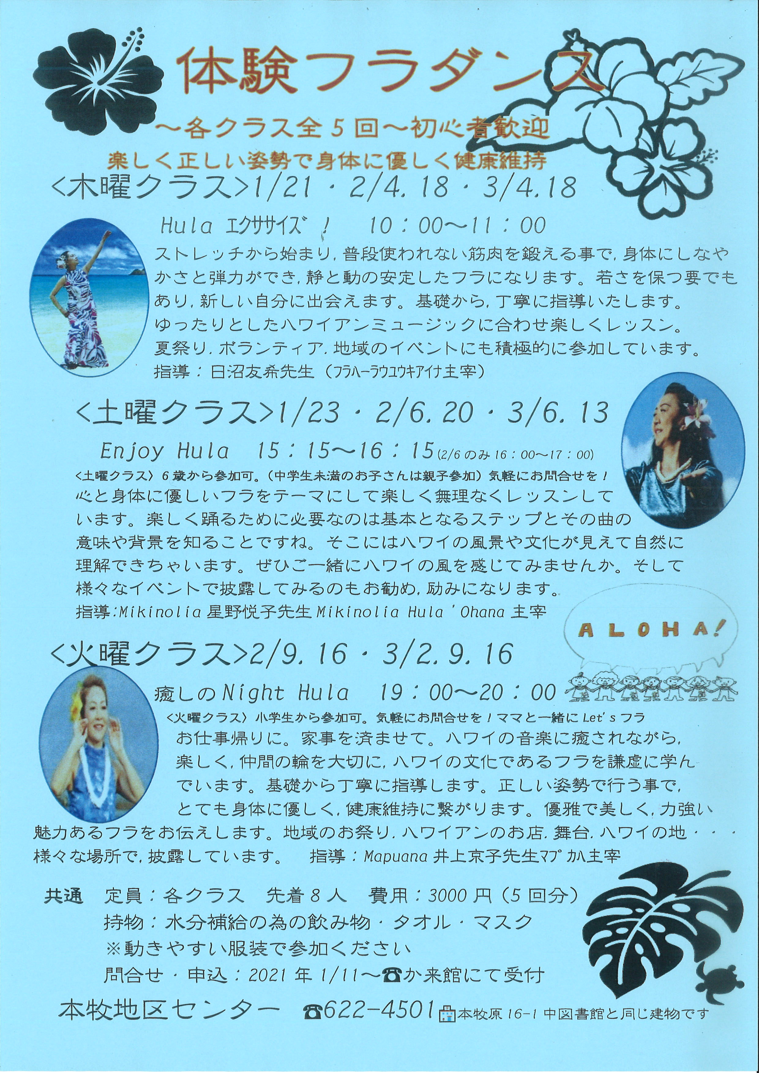 体験フラダンス 各クラス全5回 ~初心者歓迎~