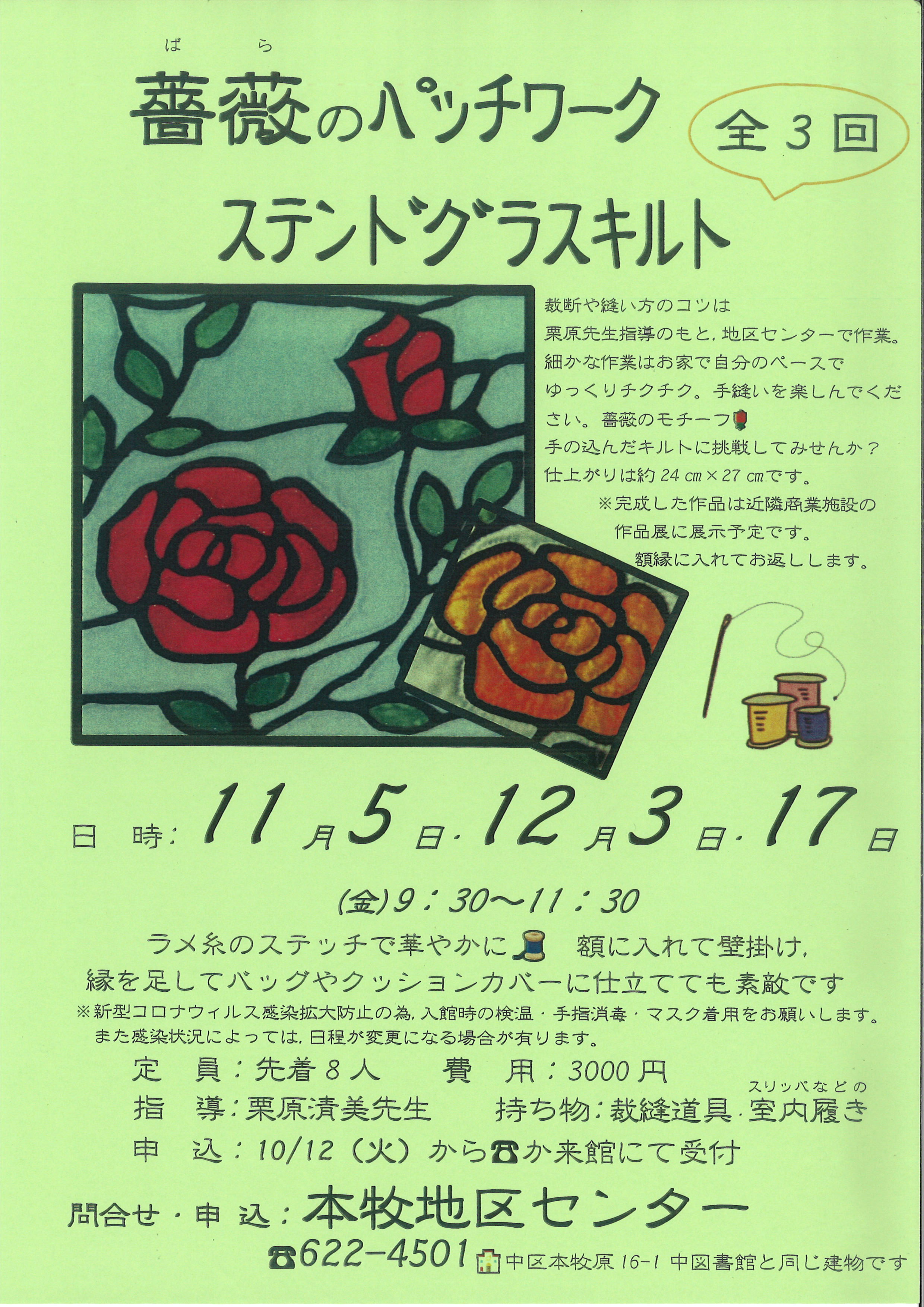 なるべく早めに地区センター迄 連絡ください。 - ■ 講師