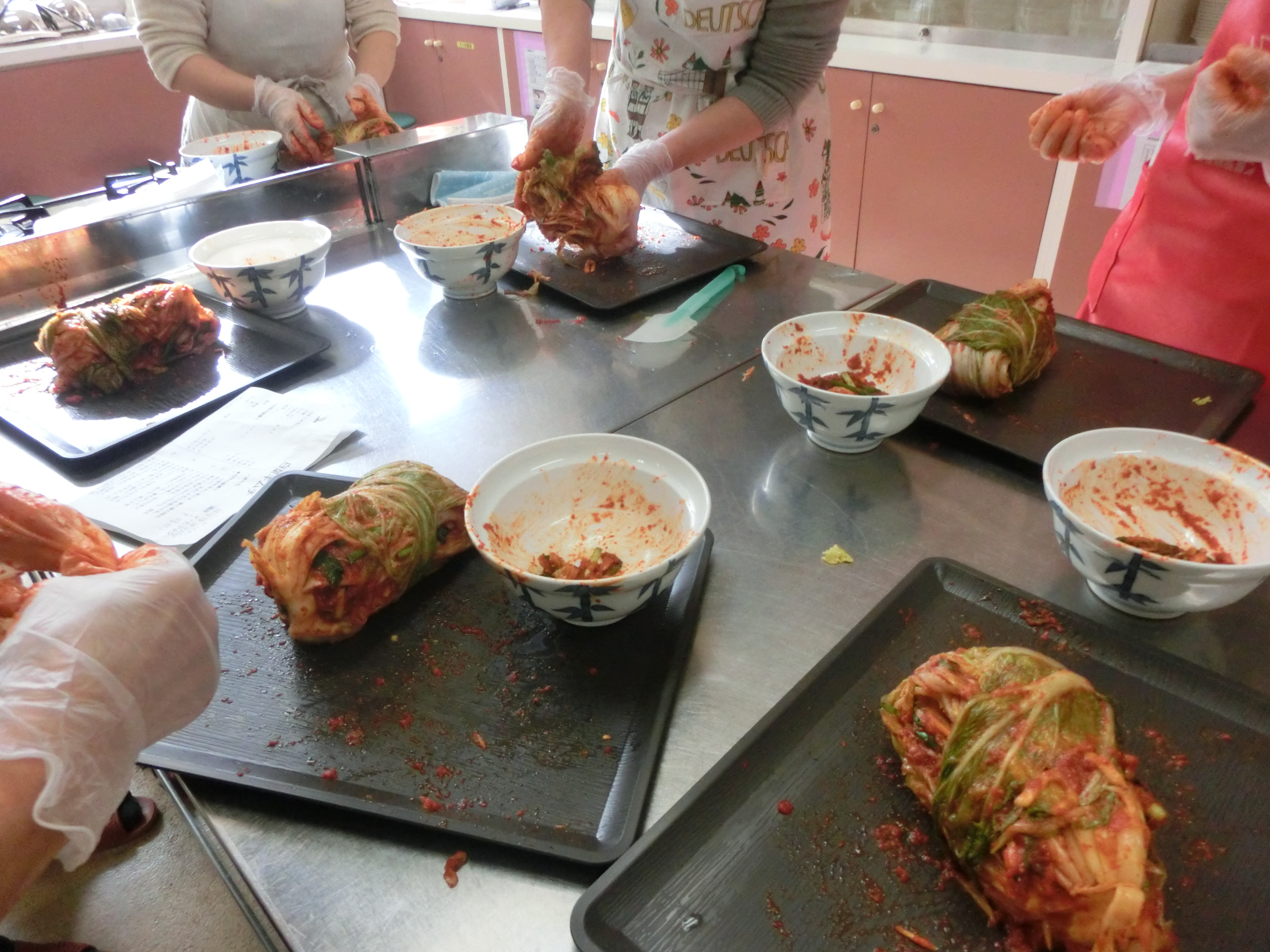 今回は今が旬の白菜を使って 「白菜キムチ」 李家とっておきレシピで ヤンニョム(タレ)作りから 先生が事前に付けた白菜キムチ 発酵期間によって異なるキムチの試食 作りたてキムチとゆで豚肉 ご飯とわかめスープで 簡単ランチ とても貴重な料理教室でした 先生がとてもチャーミングで楽しい時間でした 美味しかった 自分で作れることに驚き! 等 感想を頂きました