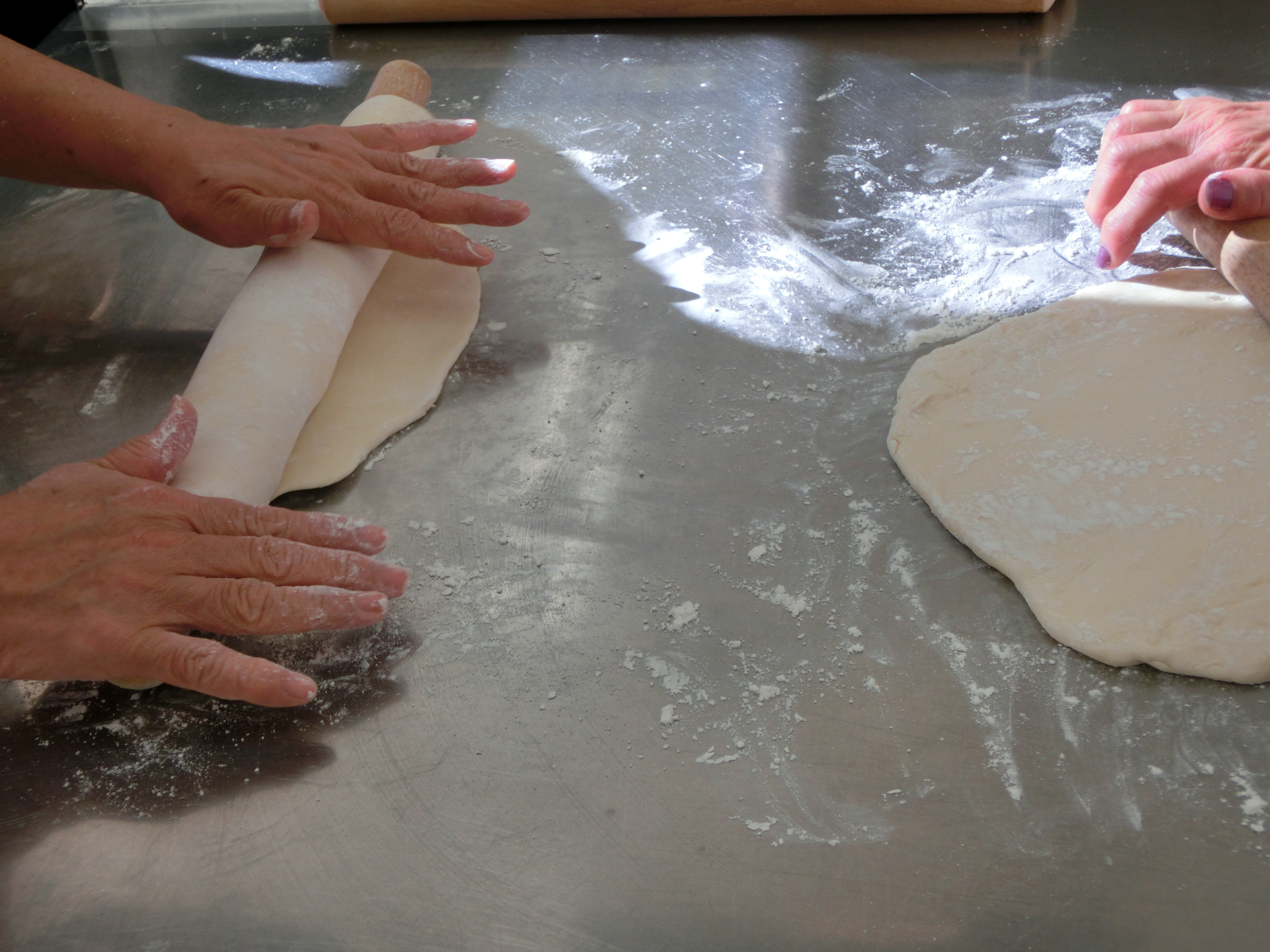 強力粉と薄力粉・生姜をよく混ぜ水を加えこねこね