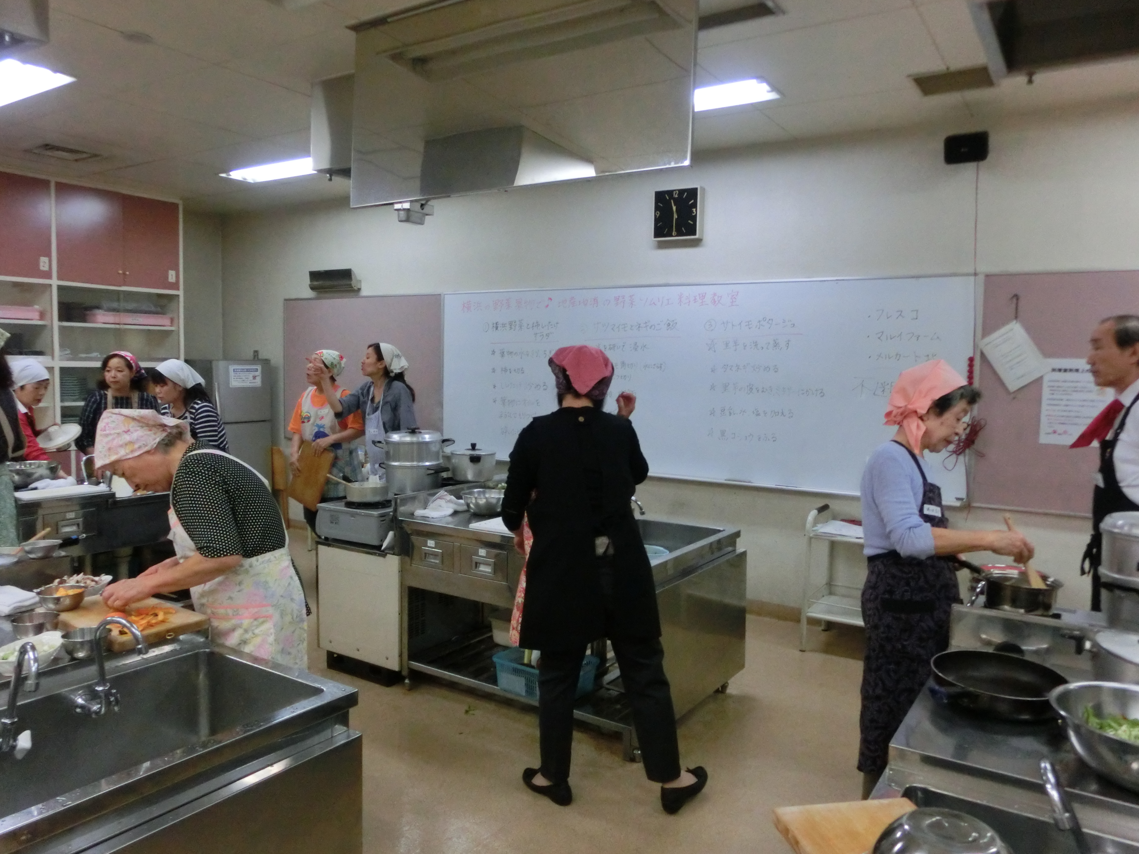 丸橋 智帆先生・水野 幸雄先生 2人の野菜ソムリエによる料理教室 野菜の選び方・栄養についての講義の後は実習です 「里芋のとろとろポタージュ」はネーミング通り「とろとろ」 寒さに向かうこれからの季節にピッタリ・・・ 参加者の方々にも大好評でした。