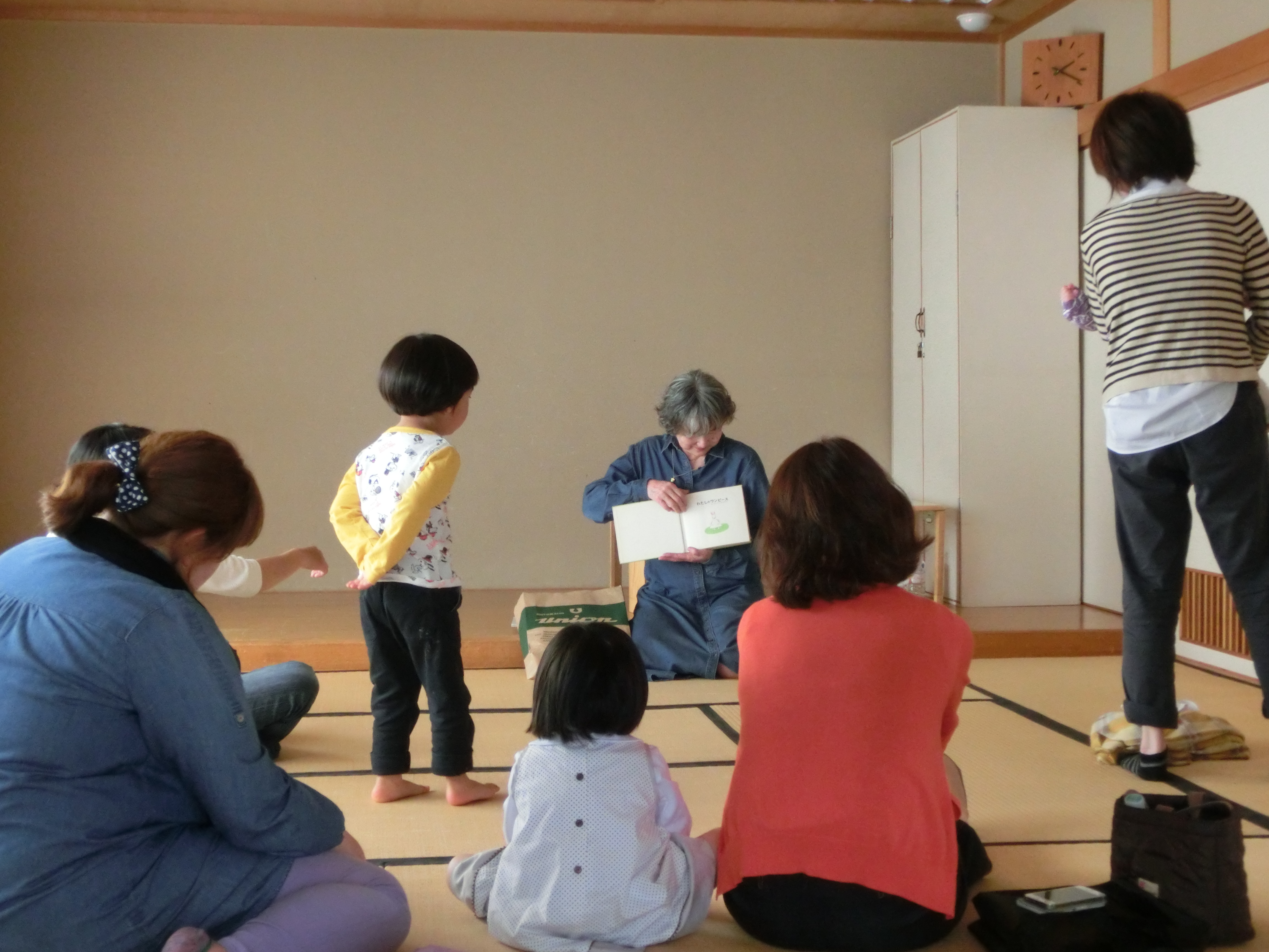 絵本の紹介と読み聞かせ 興味のあるページには 思わず身を乗り出して・・・ ママ抱っこされて・・・ 畳の上に寝転んで・・・ 午後の時間がゆったり過ぎています・・・ 5月14日(土)の「絵本の時間」は中止となりました