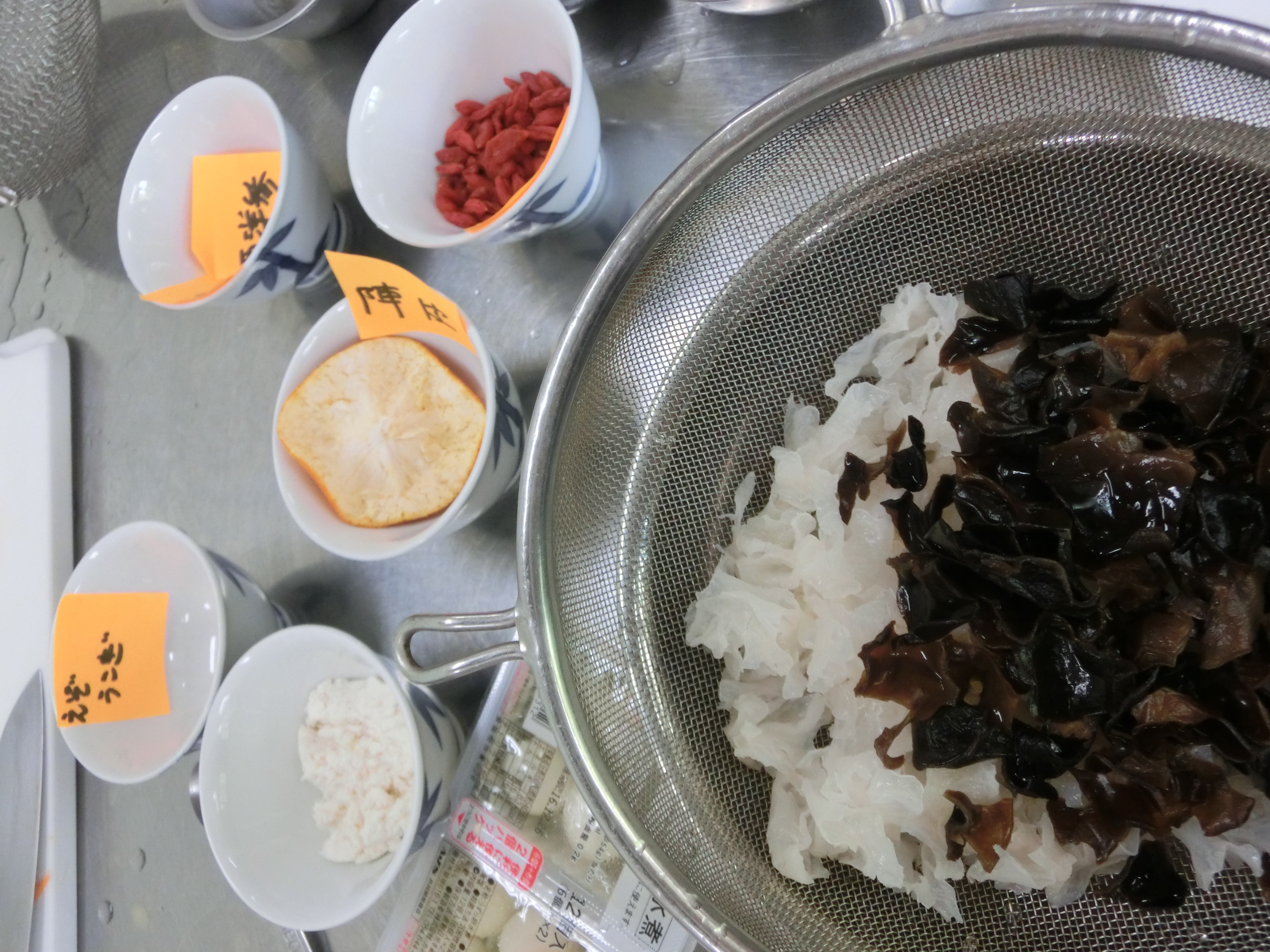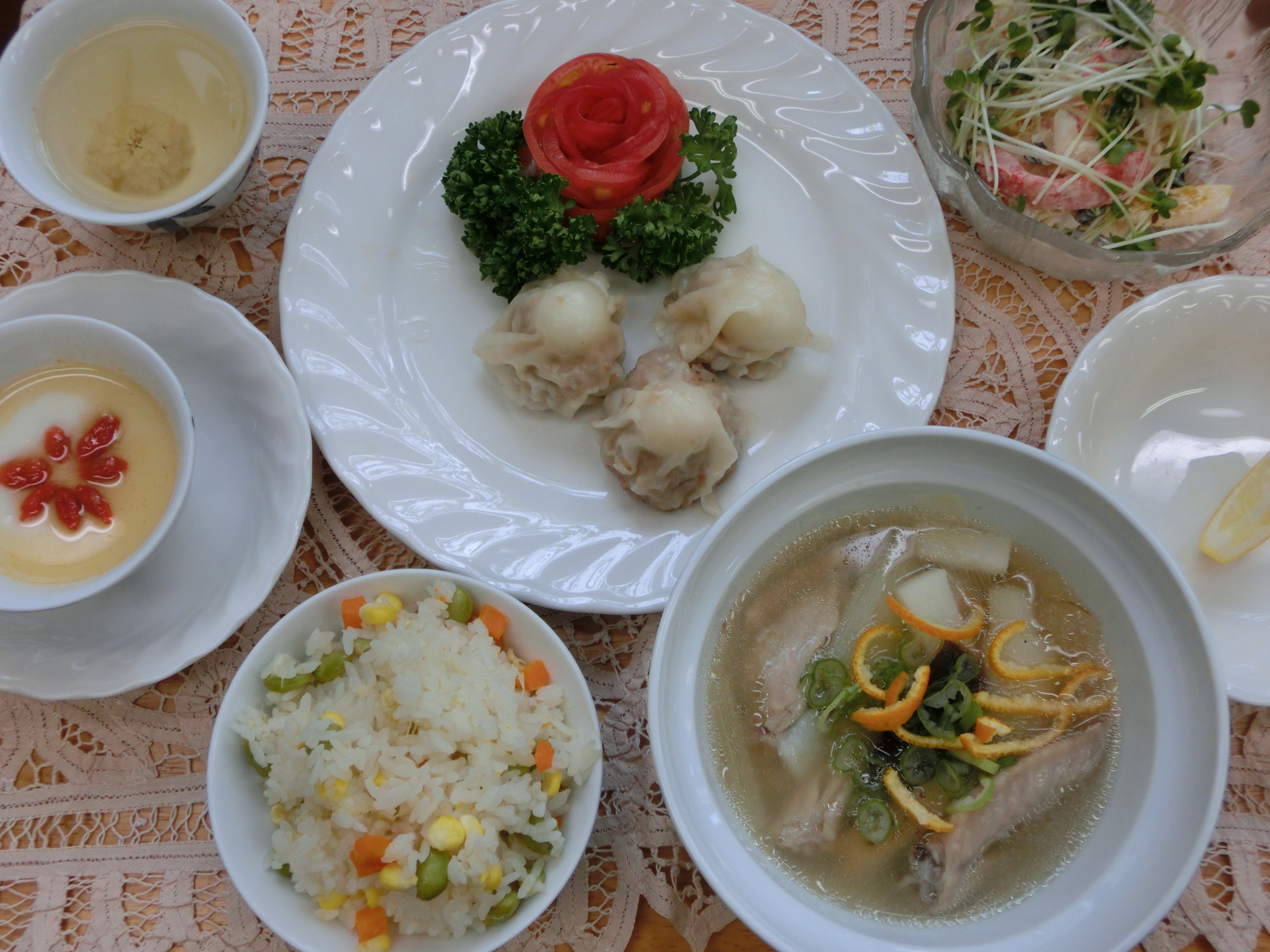 若さを保つ初秋の薬膳 ~敬老の日のために~ 富貴寄せご飯 鶏手羽先の潤いスープ ウズラ卵入り変わり焼売 双茸とパプリカの和え物 杏仁豆腐 身近な色とりどりの食材を生かして・・・ 5品を手際良く 敬老の日のおもてなしにピッタリ ウズラ卵の焼売はハロウィンのお化けにも似て 10月は5日(第1水曜日)実施です